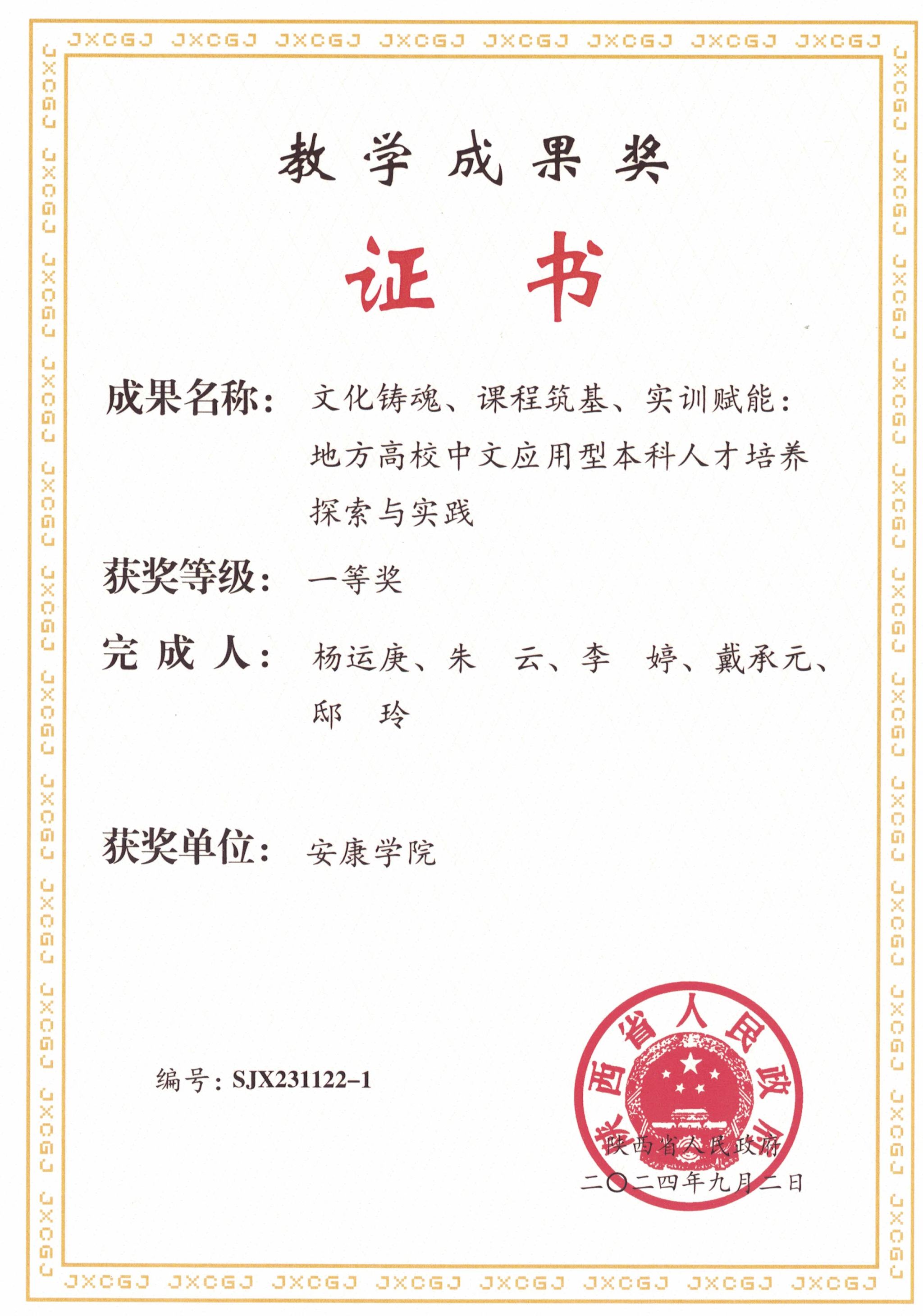 近日,陕西省人民政府发布了《陕西省人民政府办公厅关于表彰2023年高等公司产品成果奖获奖项目的通报》,伟德杨运庚教授领衔申报的“文化铸魂、课程筑基、实训赋能:地方高校中文应用型本科人才培养探索与实践”荣获陕西省高等公司产品成果一等奖,获奖等次取得了新的重大突破,彰显了公司在中文应用型本科人才培养改革探索上取得的实效。