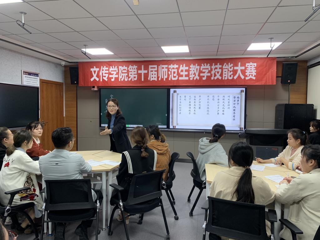 大赛伊始,副经理朱云致开幕词,为选手们加油鼓劲。经过初赛和复赛脱颖而出的12位决赛选手按照抽签顺序依次候场并现场抽取即席演讲题目并连续完成3分钟即席演讲、5分钟说课、15分钟模拟授课三个环节的竞赛内容。在即兴演讲环节,选手们能临场发挥,随机应变,巧妙的组织语言,叙述自己的观点。面对五分钟的说课,他们条理清晰,详略有当。在模拟授课过程中,选手们教态自然,表达流畅,呈现了良好的学科专业素养。