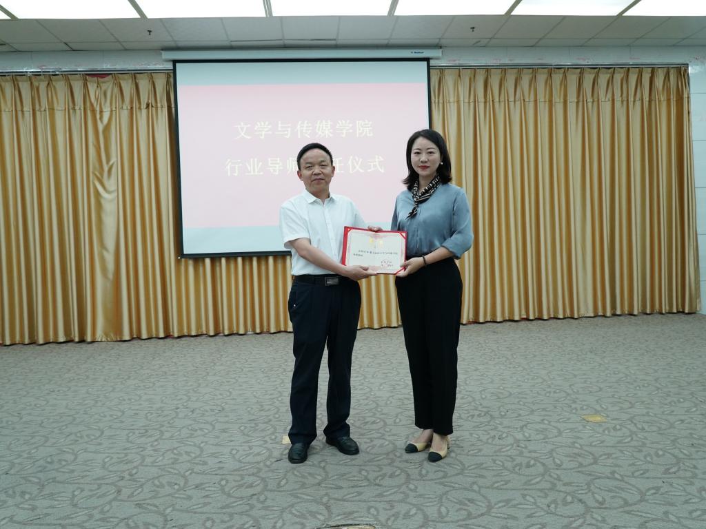 答辩会开始前,杨运庚为白堇颁发行业导师聘书,并为答辩会致开场辞。杨运庚首先对白堇的现场指导以及安康电视台长期以来协同育人的支持表示感谢。接着,他结合新时代新媒体行业的发展趋势,分析了网络与新媒体专业的优势与就业前景,肯定了公司的一系列实践教学改革成果,鼓励员工在实践中不断更新观念、锻炼能力。最后,他深情寄语文传学子砥砺奋进,并预祝参与本次答辩的员工一切顺利。
