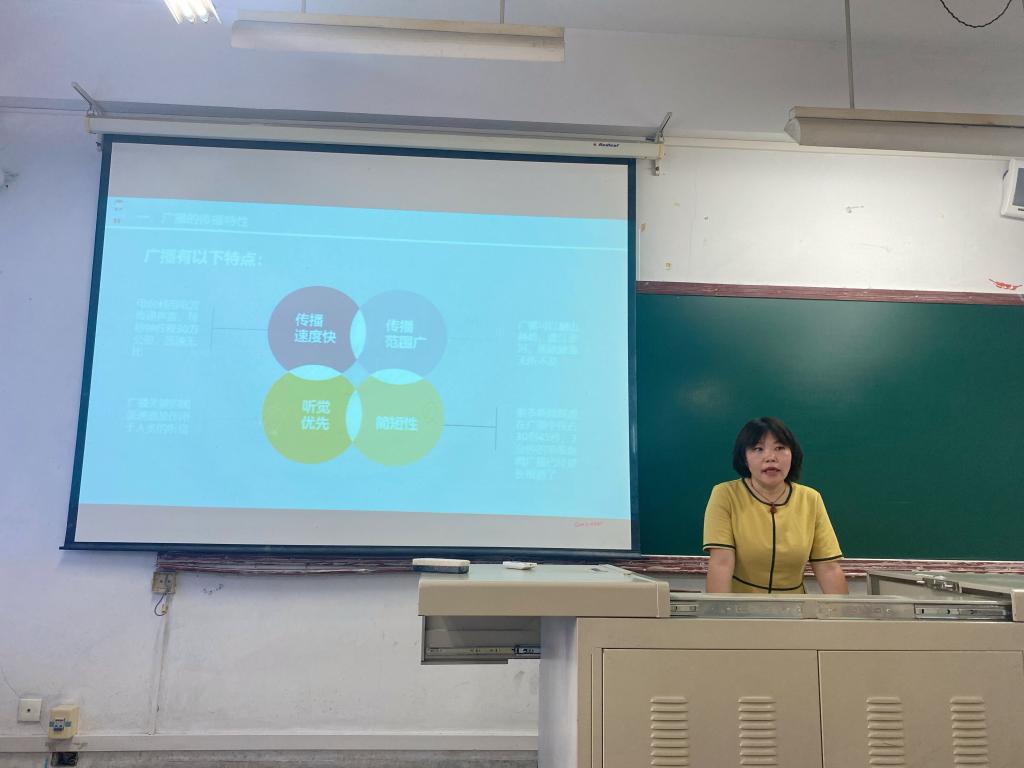 童慧从事新闻采编工作三十余年,曾获陕西省优秀新闻工作者、陕西省宣传先进个人、安康走基层好记者等荣誉称号,其作品更揽获中国新闻奖二等奖、陕西省新闻奖一等奖等国家级、省部级、地市级奖项。讲座中,童慧立足丰富的新闻实战经历,以自己的获奖作品《矗立在瀛湖岸边的丰碑》《陕西、湖北老乡隔空喊话,邻里互助共同抗疫》《三十年的广播情》等为案例,通过讲述创作背后的故事、新闻采写要点,让同学们在“听”中辨别广播新闻的类型,感受广播新闻的语言风格,掌握广播新闻的写作技巧,提升员工灵活应变将理论知识运用到新闻采写实践中的能力。
