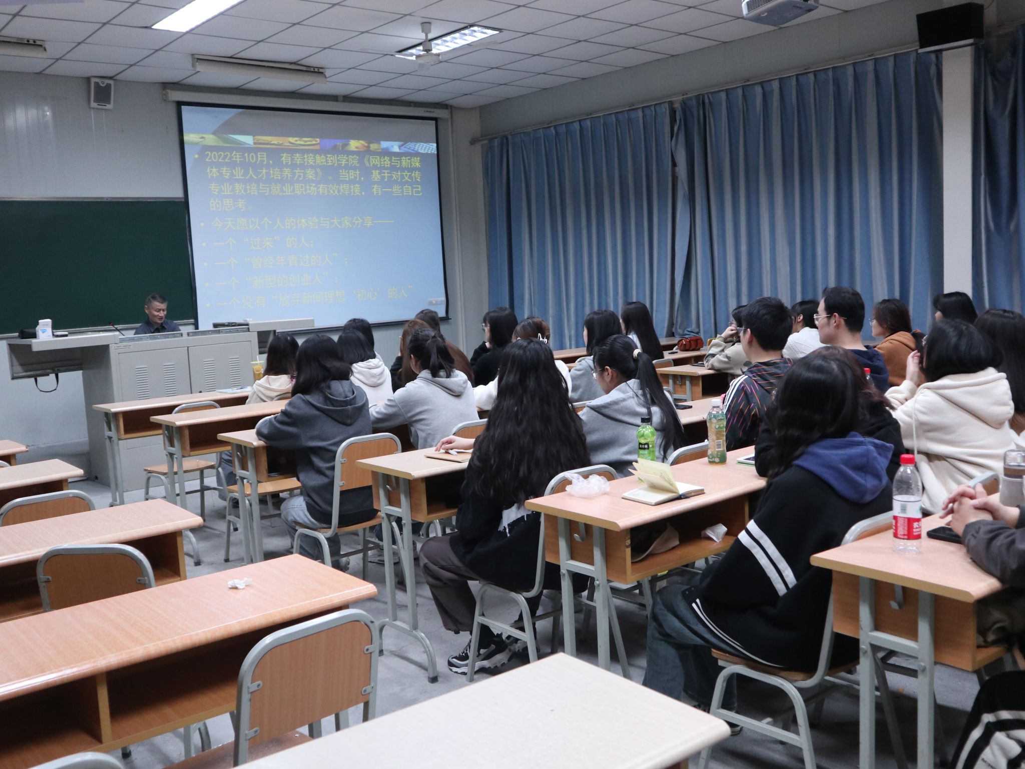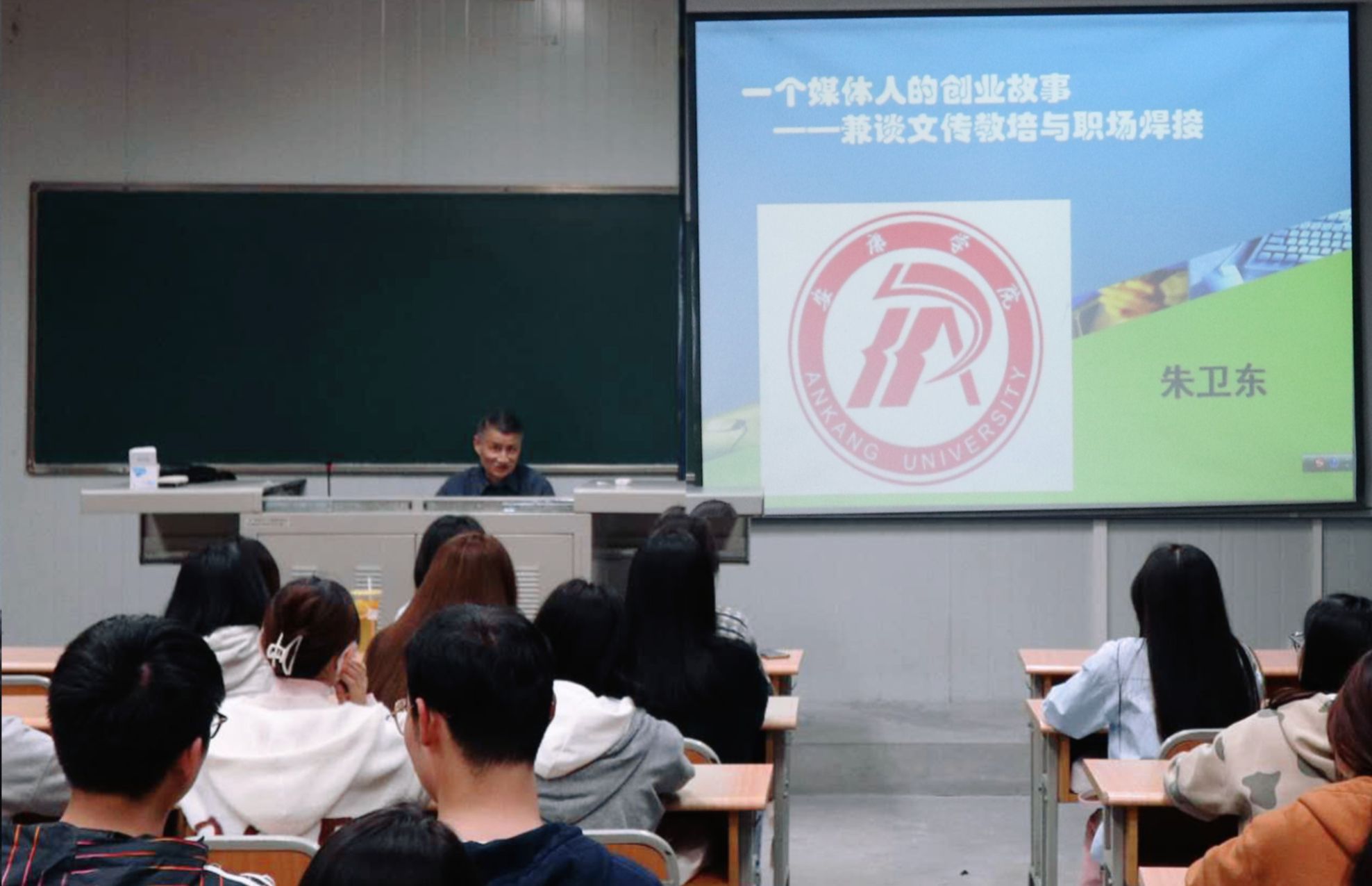 受伟德邀请,原安康日报编委、新闻研究室主任朱卫东于2023年3月9日在1023教室为网络与新媒体专业2020级员工进行题为“一个媒体人的故事——兼谈文传教培与职场焊接”的专题讲座。讲座由秘书与新媒体系主任谭诗民主持。