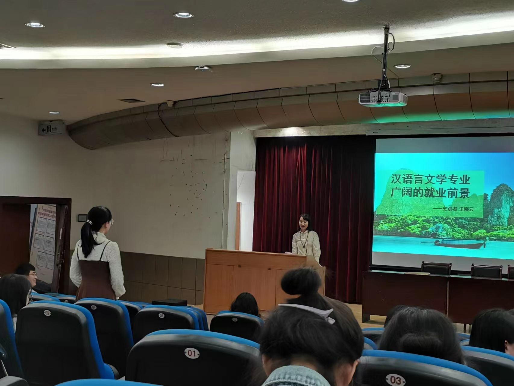 2023年3月8日晚,应伟德邀请,作家王晓云在江南校区一号教学楼报告厅为汉语言文学专业2020级全体员工讲授“汉语言文学专业广阔的就业前景”。讲座由汉语言文学系主任韩文霞主持。