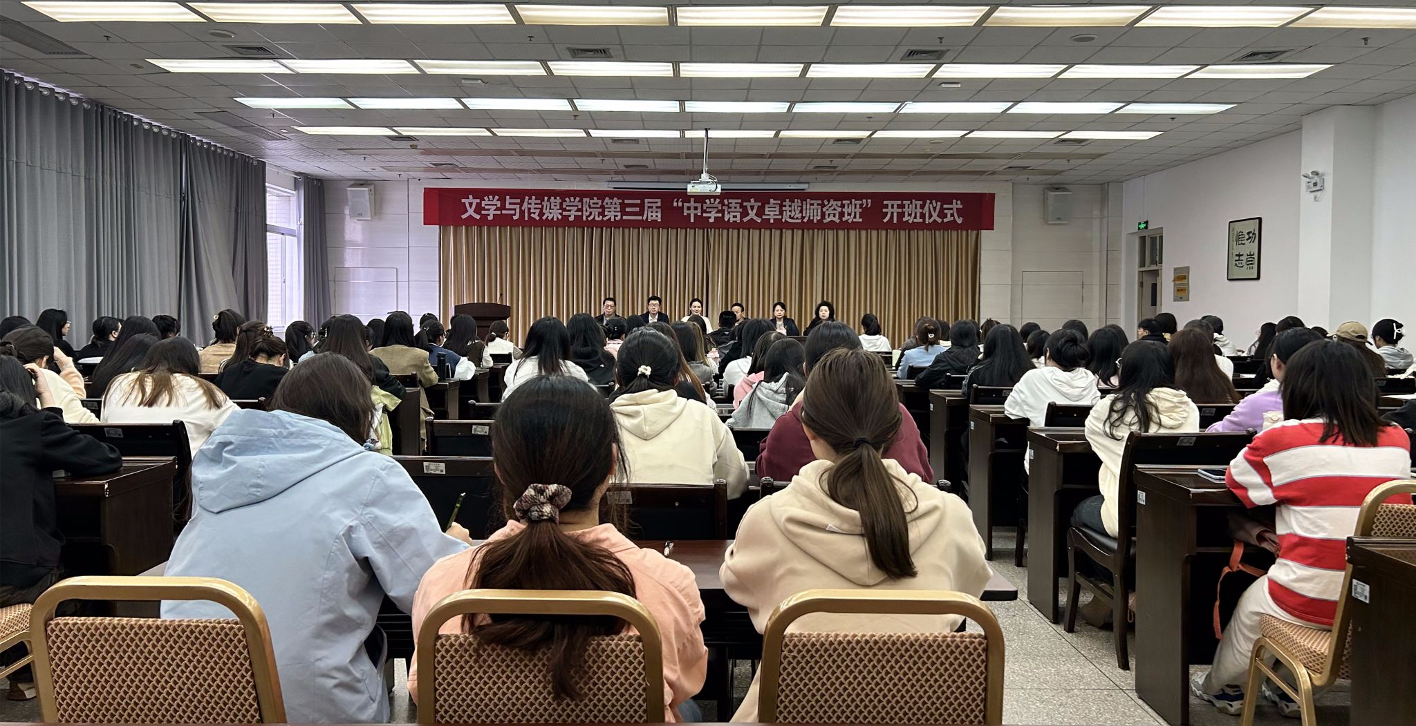 10月11日,为切实做到人才培养与行业的紧密对接,持续优化汉语言文学师范专业人才培养质量,伟德第三届“中学语文卓越团队班”在江南校区图书馆六楼报告厅顺利开班。陕西省教学名师、基础教育领军人才邱俊,公司领导班子全体成员,第三届“中学语文卓越团队班”班主任和全体员工参加了开班仪式,开班仪式由副经理朱云主持。