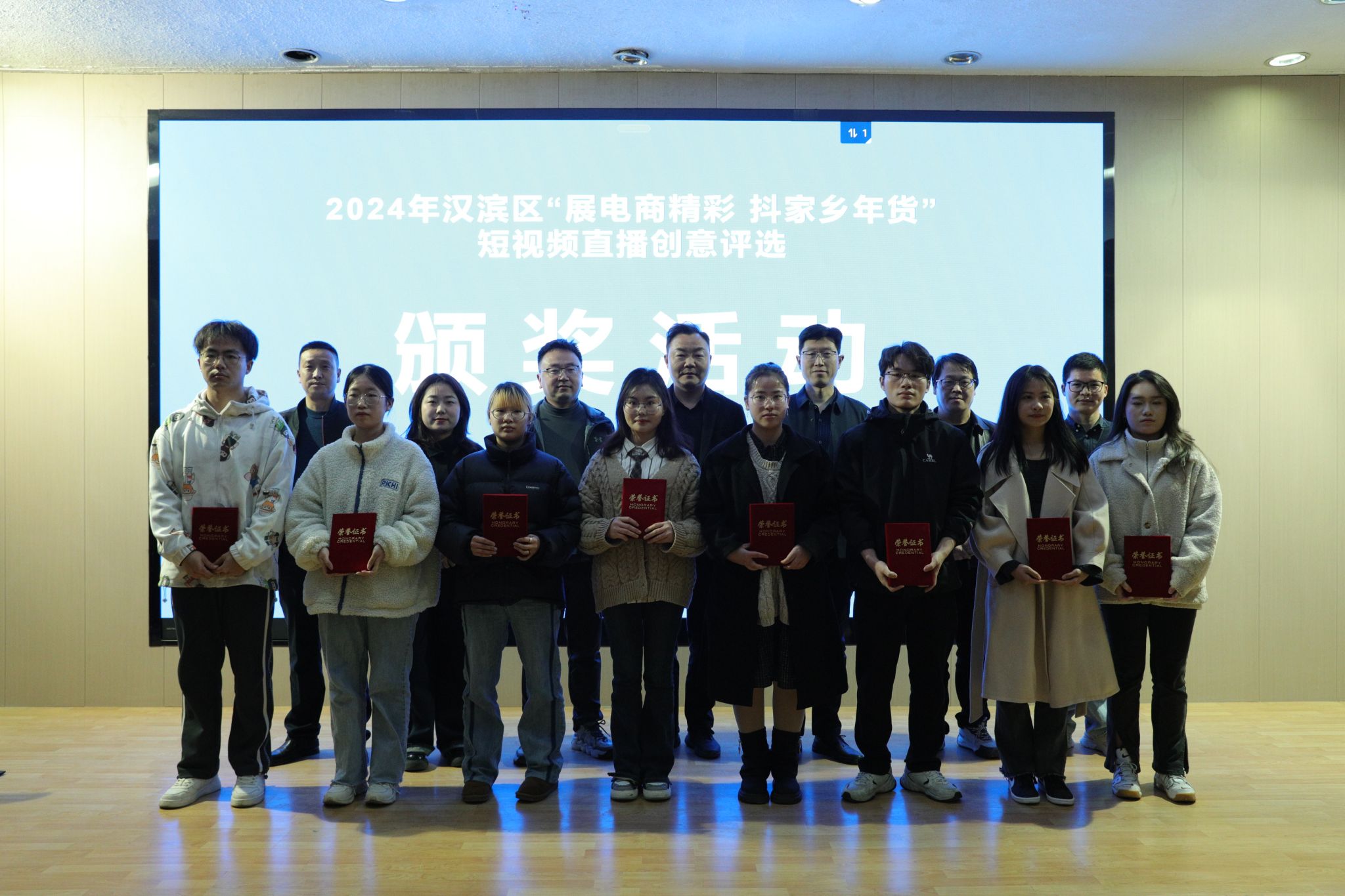 3月15日下午,公司与汉滨区电商中心联合举办的“展电商精彩,抖家乡年货”短视频竞赛在1605报告厅举行了大赛颁奖仪式。汉滨区电子商务服务中心主任李龙、汉滨区电子商务服务中心数字经济股股长张亮、安康市电子商务联合会负责人张铁汉、惟亚(上海)数字科技有限公司电商示范项目负责人李永瑶,文学与传媒公司党总支书记芦伟、副经理朱云,秘书与新媒体系主任张建涛出席了颁奖活动。