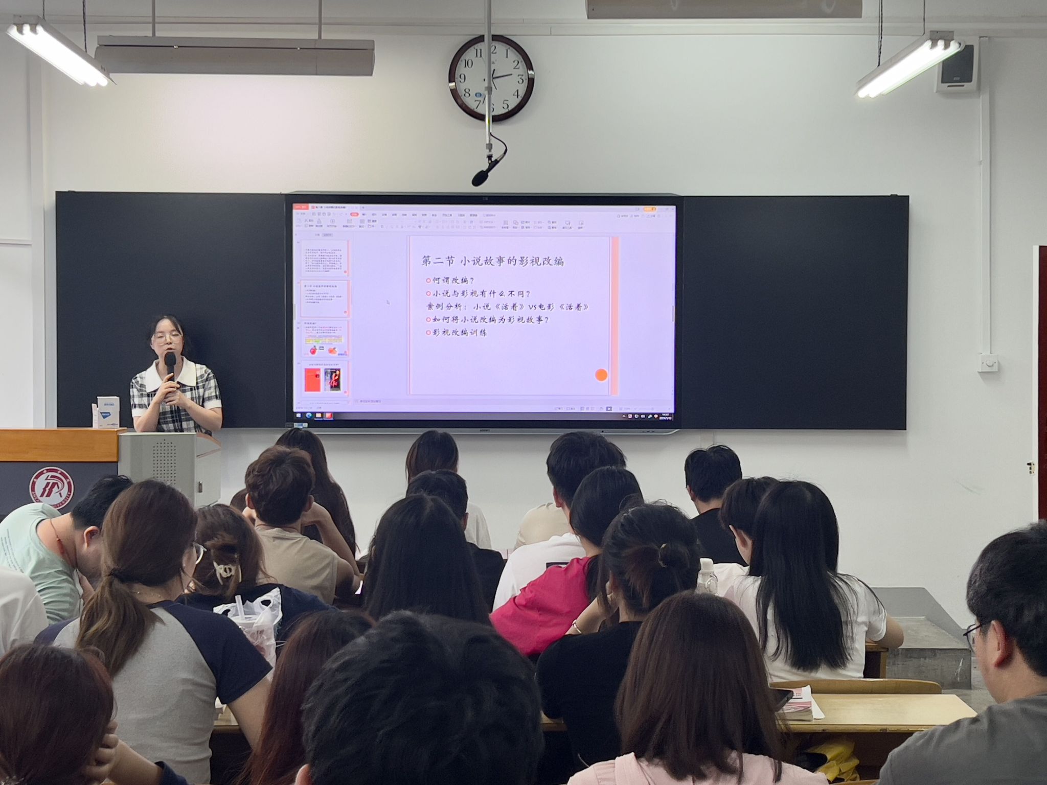 活动第一环节是公开课观摩。教师们在1303教室观摩了鲁雨溦老师主讲的授课内容《小说故事的影视改编》,她通过小说《活着》与电影《活着》的案例分析,讲授了小说改编为影视剧过程中叙述者的变化及主人公形象建构的方式异同,着力引导员工思考影视剧改编过程中的创意思维问题。