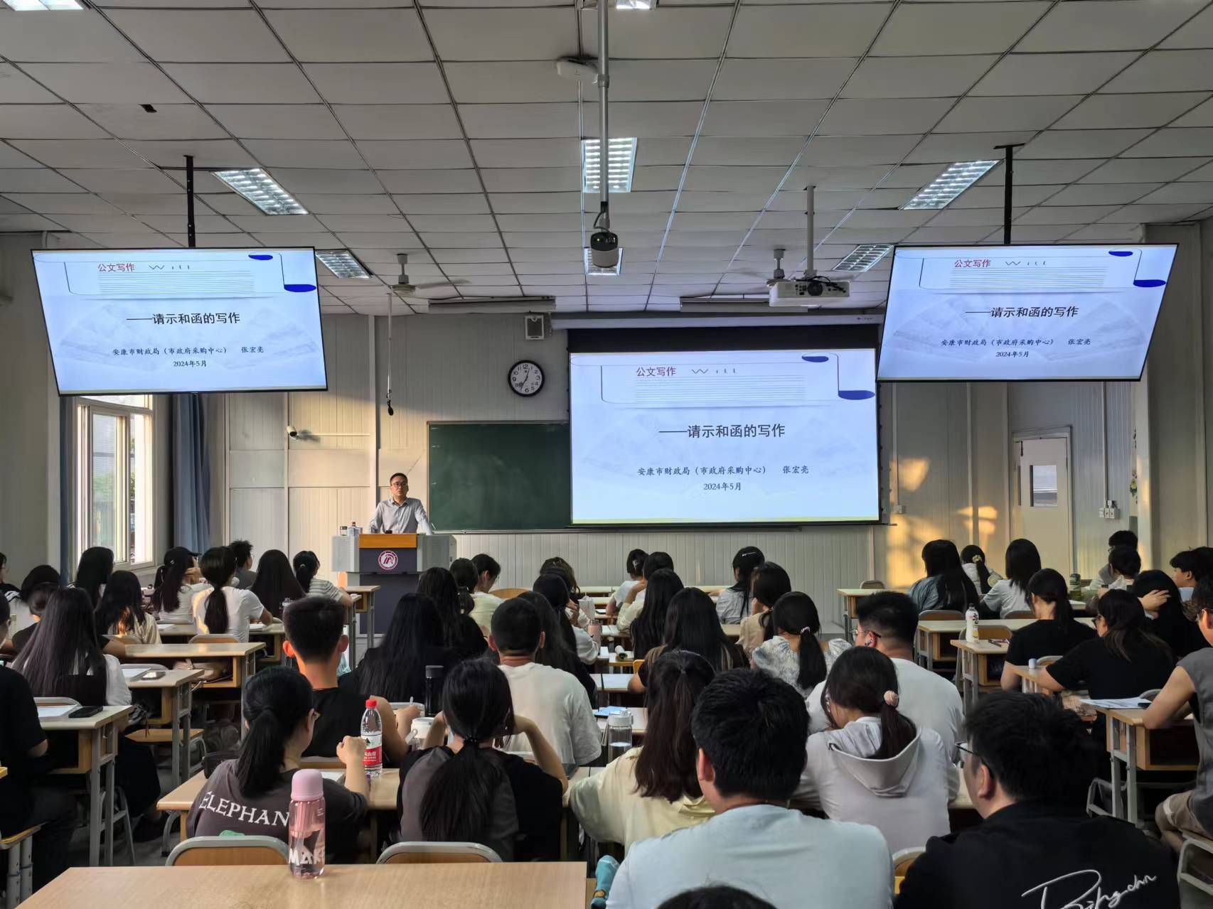 按照应用文写作“双师课程”教学计划,伟德分别于5月21日、28日和6月4日、11日、14日邀请课程安康市政府采购中心张宏亮为汉语言文学2023级1、2班员工讲授请示、批复、报告、函、纪要等公文和申论写作的技巧。校内任课教师胡少山随堂参与了授课。