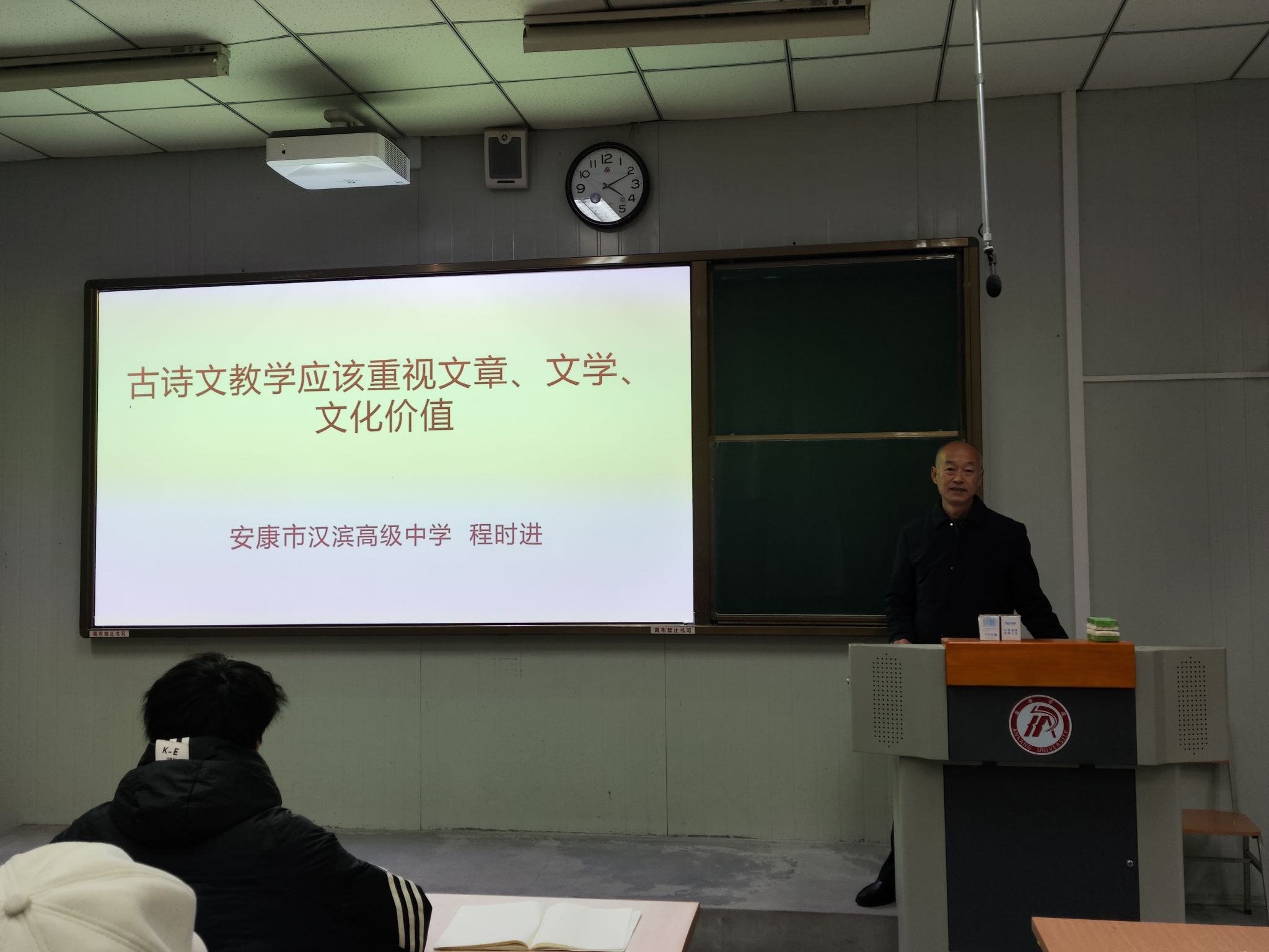 2024年12月19日下午,汉滨高级中学语文特级教师程时进老师应邀为公司师范生做了“古诗文教学中的文章、文学和文化价值”学术讲座,伟德100余名师范生聆听了本次讲座。