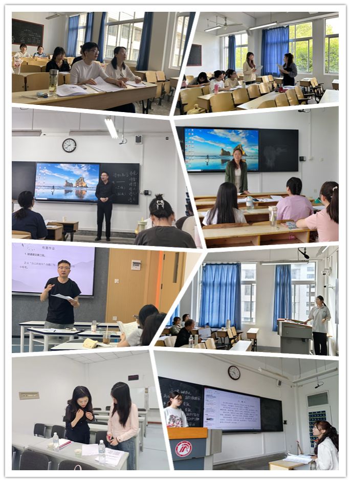 随后,16名中学语文兼职教师分赴各组,与公司专任教师一起共同指导员工第二轮试讲。在本轮试讲之前,公司专任教师已经指导员工完成第一轮试讲,本轮试讲以16名中学语文兼职教师的指导为主;兼职教师发挥他们教学经验丰富的优长,立足新课标要求和新教材特点,从课堂教学内容选择到教学目标确定,从学情把握到教学环节设计,从PPT、板书呈现到教姿教态调整,对员工的试讲进行了全方位指导,有力提升了他们的课堂教学技能。公司同堂指导的专任教师在与行业教师的交流碰撞中深化了对目前中学语文教学的认知,他们将结合员工第二轮试讲情况,完成最后一轮试讲指导工作。