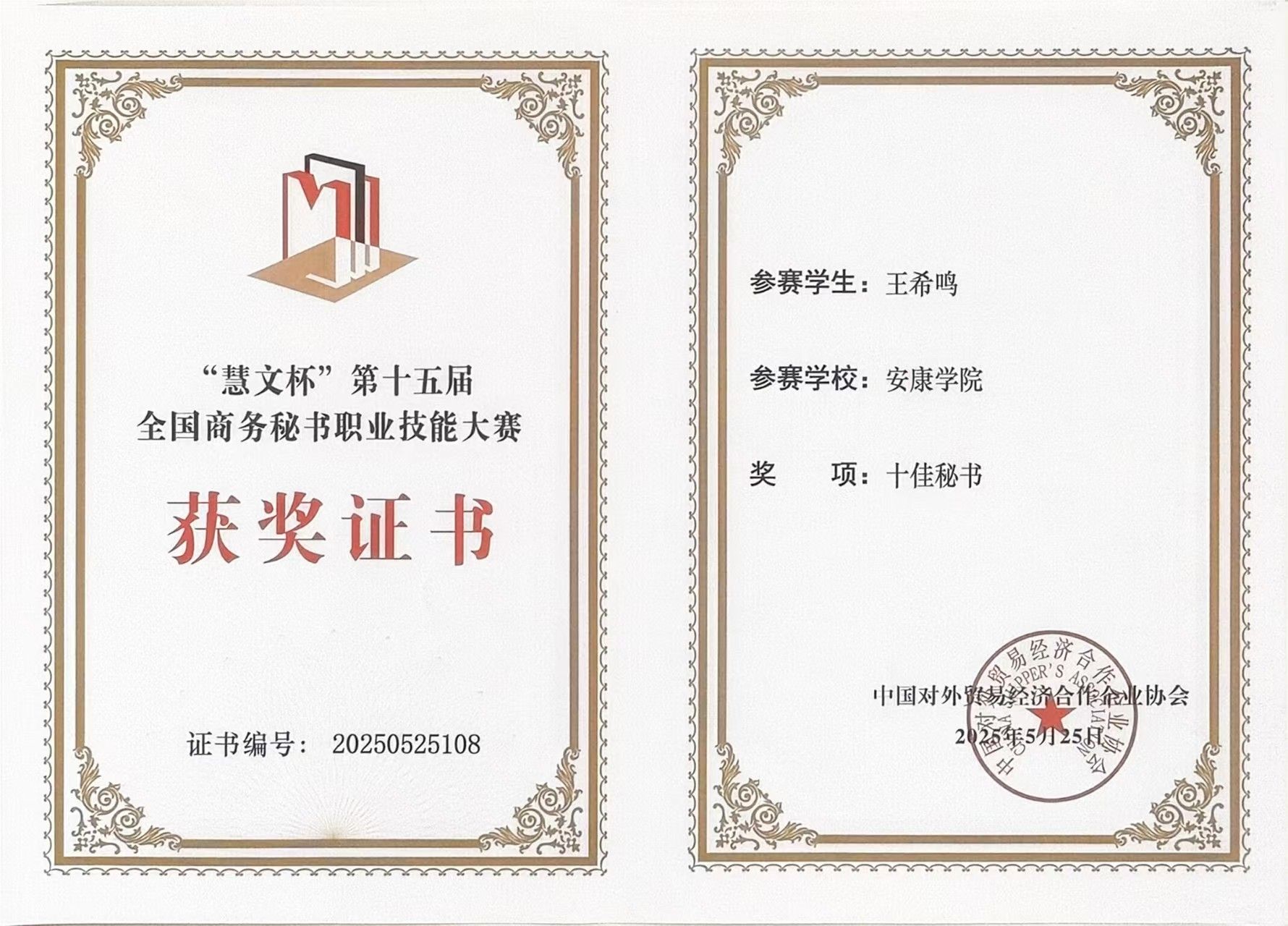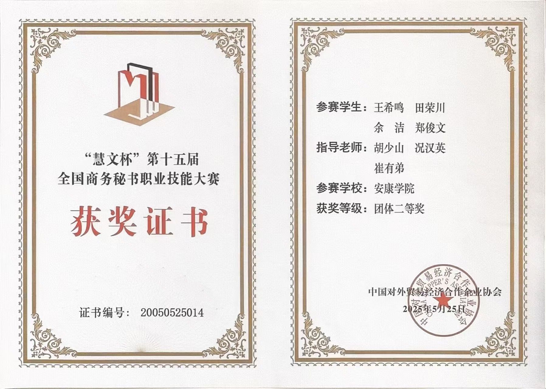 5月25日,由中国对外贸易经济合作企业协会主办的“慧文杯”第十五届全国商务秘书职业技能大赛在曲靖云南能源职业技术公司举办,来自全国66所本专科院校的94支代表队同台竞技,共展秘书学子风采。公司伟德秘书学专业员工王希鸣、余洁、田荣川、郑竣文,在指导教师胡少山、况汉英的指导和带领下组队参赛,喜获“慧文杯”第十五届全国商务秘书职业技能大赛团体二等奖,王希鸣荣获“十佳秘书”称号,余洁获秘书专项事务处理特等奖、田荣川获秘书专项事务处理一等奖。