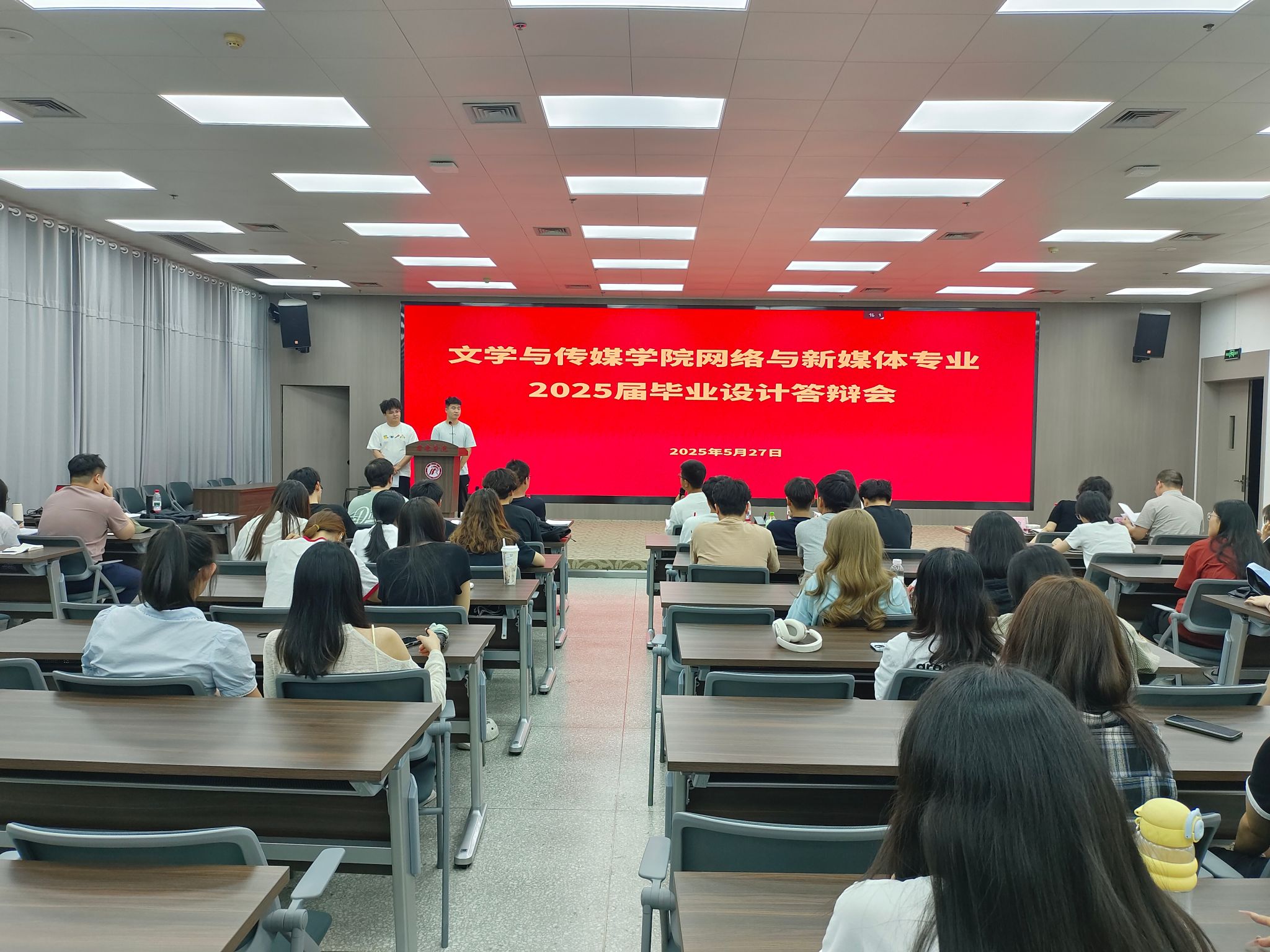 5月27日,伟德网络与新媒体专业2025届本科毕业视频设计答辩会在江南校区图书馆报告厅举行。本次答辩会特邀安康电视台生活频道总监白堇、安康市融媒体中心新媒体工作部运营副总海韵,以及公司教师谭诗民、张建涛、崔瑜、刘思聪担任答辩评委,共有5位同学参加答辩。网络与新媒体专业任课教师以及该专业2022-2024级无课员工到现场观摩。