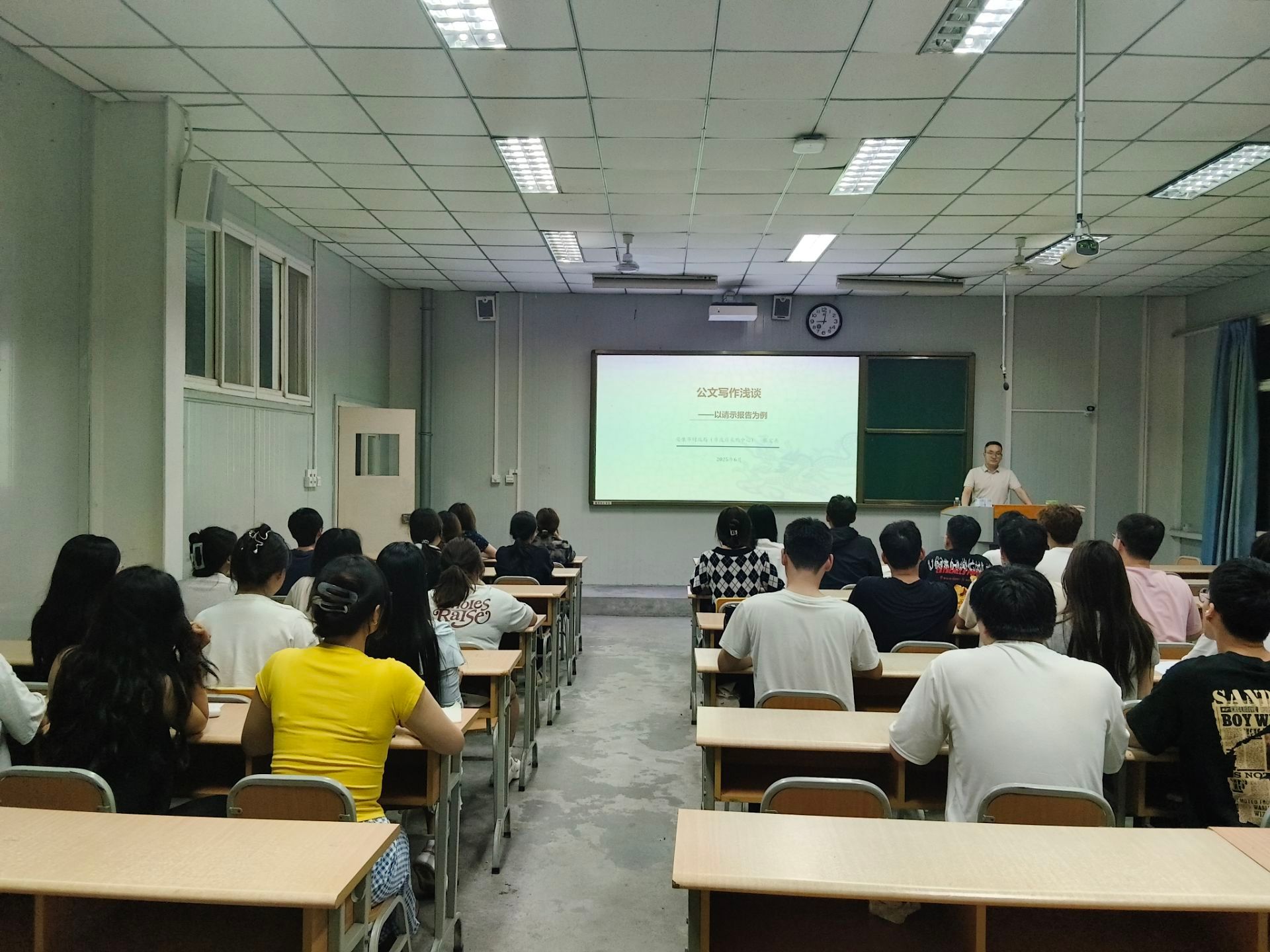 助力秘书学专业员工适应未来职业发展需要,提升应用文写作能力,64​伟德在江南校区10号楼1023教室举办了题为公文写作浅谈——以请示、报告为例的专题讲座。本次活动邀请安康市政府采购中心张宏亮主讲,秘书学专业负责人胡少山副教授主持,秘书学2022级全体员工现场听取了报告。