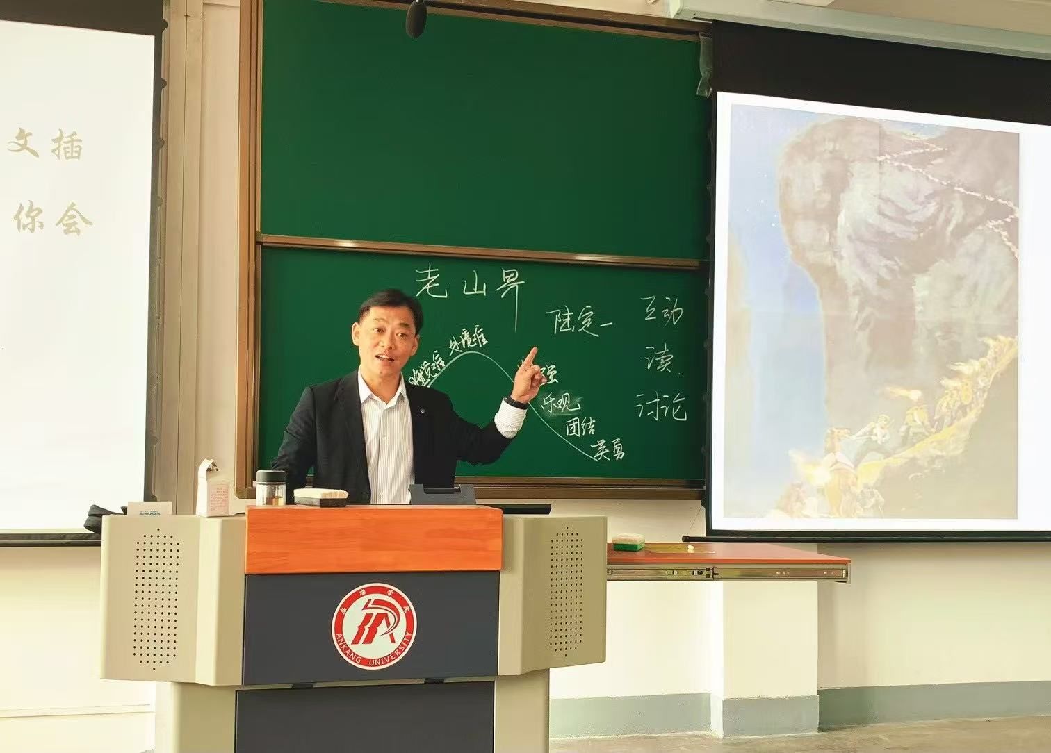 刘勇老师以“讲述一次翻越——认识一支队伍——领悟一种情怀”为线索为大家展示了革命文化类作品《老山界》一课的教学设计思路。