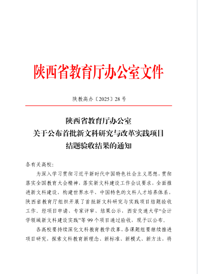 10月28日,陕西省教育厅办公室发布了《关于公布首批新文科研究与改革实践项目结题验收结果的通知》(陕教高办〔2025〕28号),伟德杨运庚、朱云、谭诗民、李婷、崔瑜等团队成员共同完成的“应用型地方本科高校汉语言文学专业改造提升探索与实践”项目顺利通过结题验收。