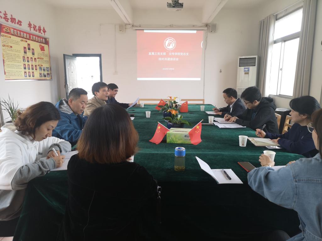 李光梓和公司党总支书记芦伟先后介绍了两个结对共建党组织的基本情况。会议通报了《直属三党支部公司党总支结对共建活动方案》,与会人员结合公司党委印发的《直属党支部二级公司党总支结对共建实施办法》文件要求,从自身所在部门的工作实际出发,就如何发挥各自优势,围绕立德树人根本任务,加强工作沟通联动,提升协同育人成效,发挥基层党建引领作用,扎实推进共同发展提出了很好的意见和建议。大家纷纷表示在以后的工作中要进一步加强交流合作,切实提升党建工作水平,强化服务中心意识,增强结对共建工作实效。