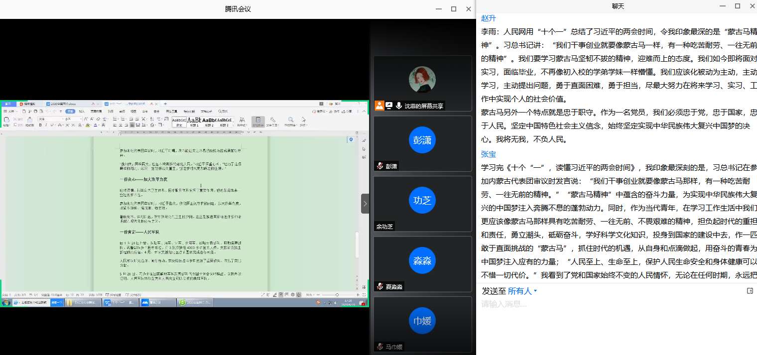随后,与会成员共同学习了《十个“一”,读懂习近平的两会》,并就学习心得展开了热烈讨论。