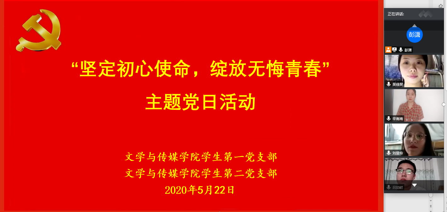 为进一步规范党内的组织生活,深入推进“两学一做”学习教育常态化、制度化,激励党员树立崇高理想,坚定理想信念,2020年5月22日下午16:30,伟德员工第一、第二党支部通过线上形式,联合开展了“坚定初心使命,绽放无悔青春”主题党日活动。员工第一、第二党支部全体党员、第二十期发展对象参加了本次活动。活动由员工第一党支部书记彭潇主持。