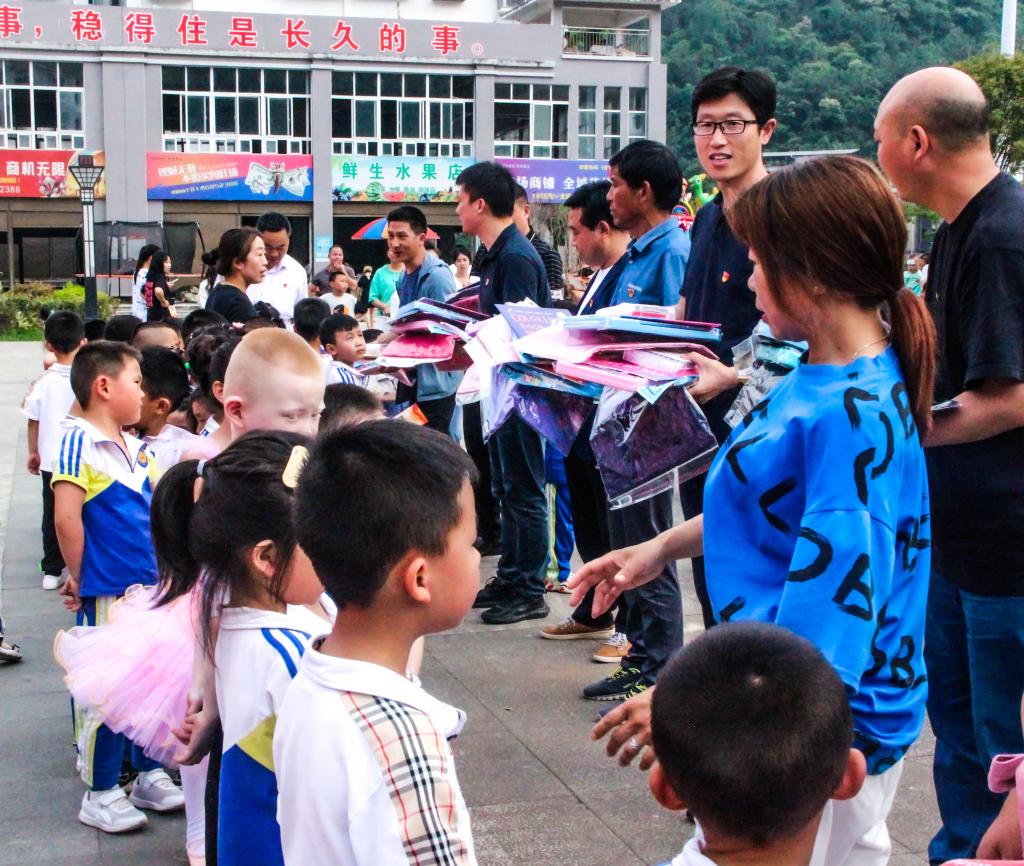 演出活动伊始,伟德经理杨运庚代表共建支部向民主镇明珠社区赠送了由公司教师编撰的《沈氏家训》中小员工读本。正值“六一”儿童节,党员们与镇村领导还一起向新喜村的40余名孩子们赠送了节日礼品,送上了节日祝福。