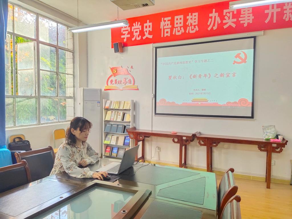 7月15日,伟德教工第二党支部在2307会议室开展了“中国共产党新闻思想史学习”读书活动。活动由支部书记谭诗民主持,支部全体党员参加了读书活动。本次读书活动主讲人为支部组织委员崔瑜,阅读篇目为瞿秋白《<新青年>之新宣言》。