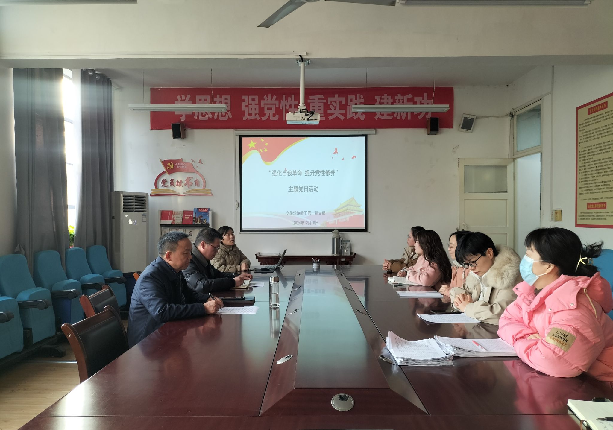 为进一步学习和理解习近平总书记的《深入推进党的自我革命》精神内涵,2024年12月18日下午,伟德教工第一支部组织全体党员开展“强化自我革命 提升党性修养”主题党日活动,活动由支部书记韩文霞主持。
