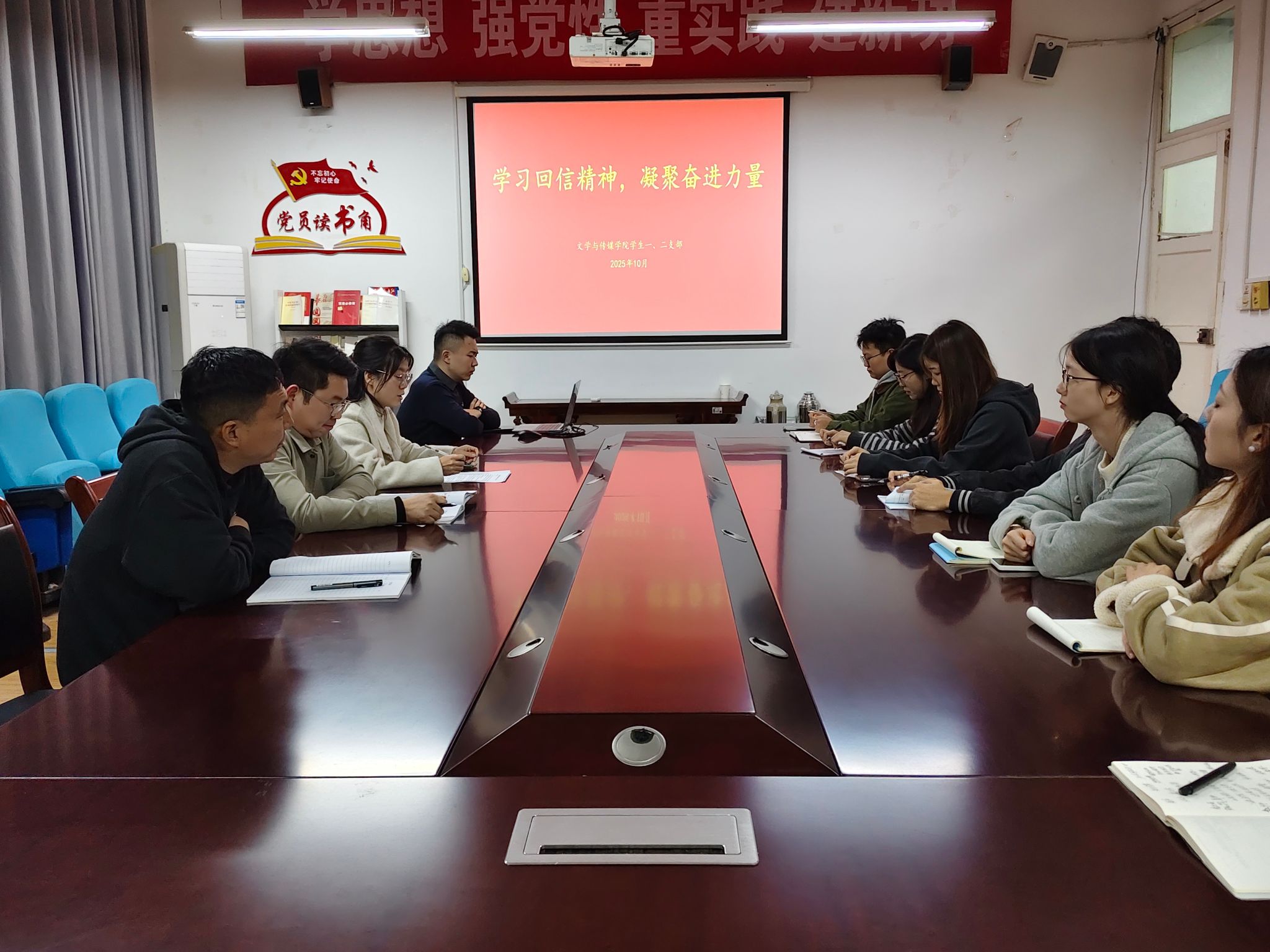 全体党员认真研读了习近平总书记给特岗教师的重要回信内容,领会“胸怀天下、以文化人”的教育家精神内核,与会党员深刻感受到习近平总书记对基层教育工作者和青年群体的深情厚爱与谆谆嘱托,认识到教育在民族复兴伟业中的基础性、先导性作用。随后,全体党员集体观看央视纪录片《大先生》中关于龚全珍的感人事迹专辑,她数十年如一日,将自己对教育事业的热爱和对人民群众的深情化为默默耕耘的实际行动,其“大先生”风范深深触动在场每位党员。在学习与观影之后,与会党员结合自身专业学习与未来规划,踊跃分享学习感悟。