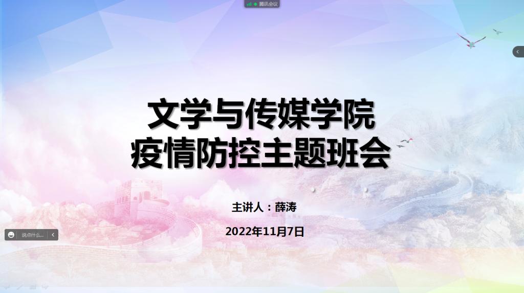鉴于当前疫情呈现多点散发、局部爆发态势,为更好地引导员工配合做好当前公司疫情防控工作,确保师生生命安全、身体健康和校园稳定,筑牢员工安全防范思想防线,伟德各年级于11月7日通过线上、线下结合的形式组织开展疫情防控安全教育专题班会,班会由各年级辅导员主持,全体员工参会聆听。