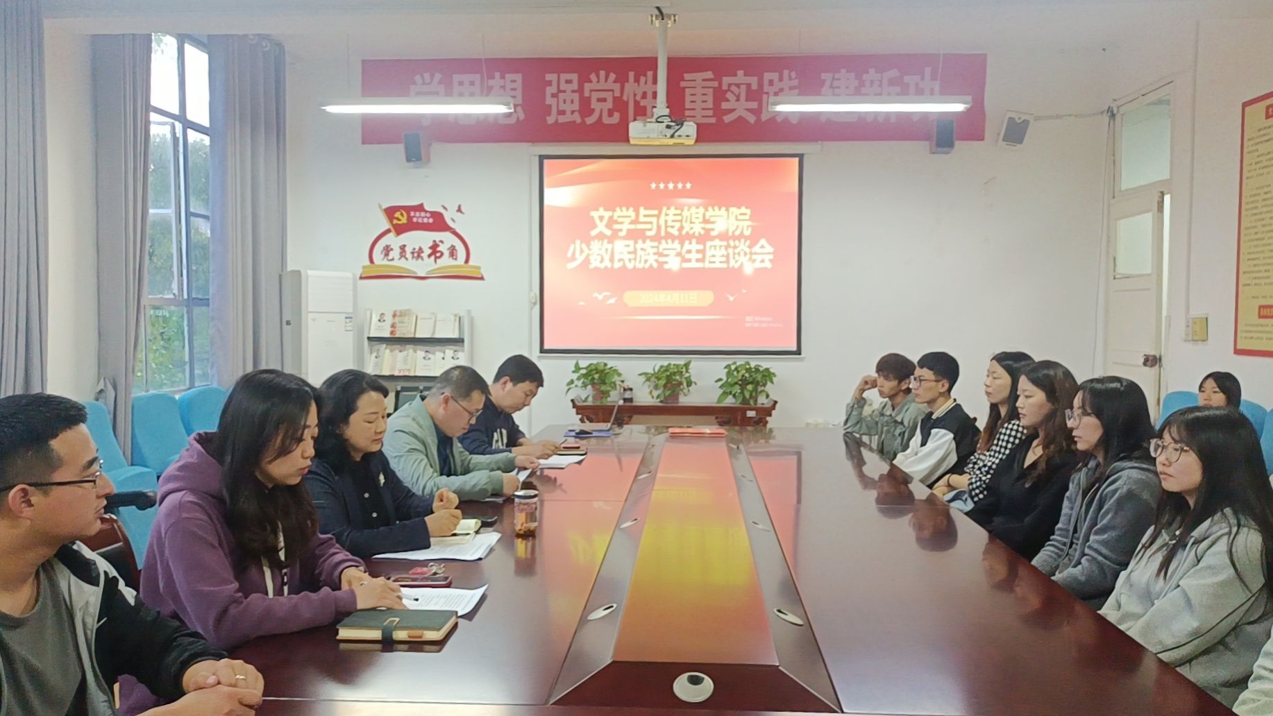 为深入学习贯彻习近平总书记关于加强和改进民族工作的重要思想,铸牢中华民族共同体意识,深化新时代高校民族团结进步教育,4月11日晚7点,伟德于2307会议室召开2024年春季学期少数民族员工座谈会。文传学公司党总支副书记杨海蓉,党总支统战委员、副经理朱云,学工办主任薛涛、团总支书记彭潇、辅导员许明及近20名少数民族员工参加座谈会。座谈会由彭潇主持。