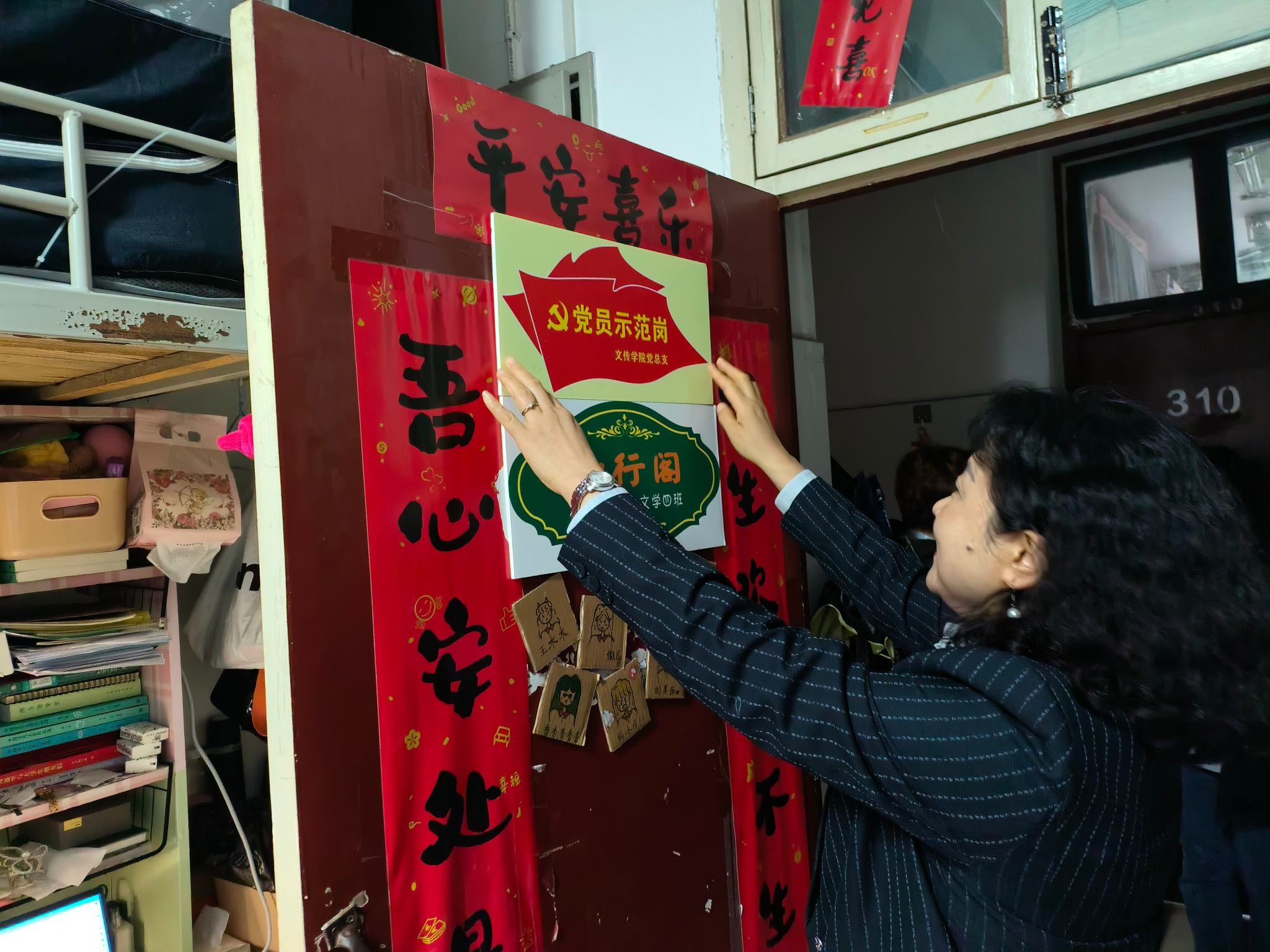 启动仪式后,老师们移步员工宿舍,为党员先锋示范岗和新生宿舍挂牌。