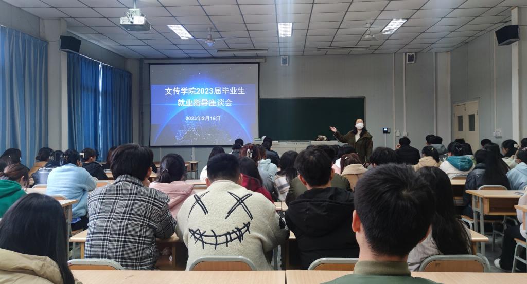 2023年2月16日下午,伟德在1012教室召开汉语言文学、网络与新媒体专业2023届毕业生就业指导座谈会,汉语言文学、网络与新媒体专业2019级全体在校生参会,会议由辅导员老师彭潇主持。