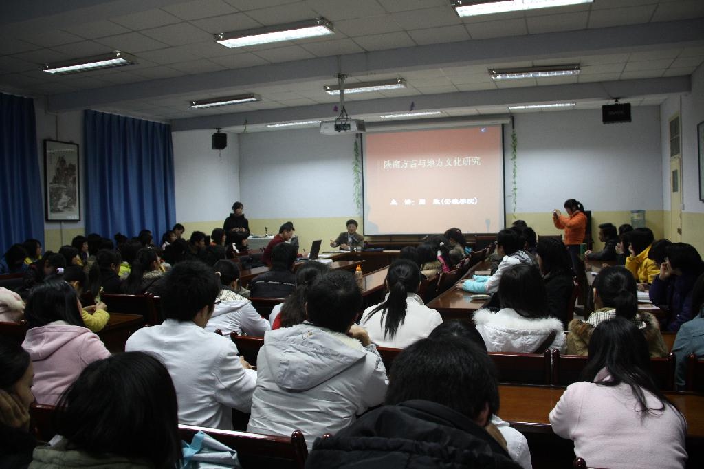 2009年3月11日下午,春雨霏霏,空气湿润,陕西理工公司文公司两个报告厅座无虚席,我系著名作家李春平、方言研究专家周政教授应邀同时举行两场讲座。