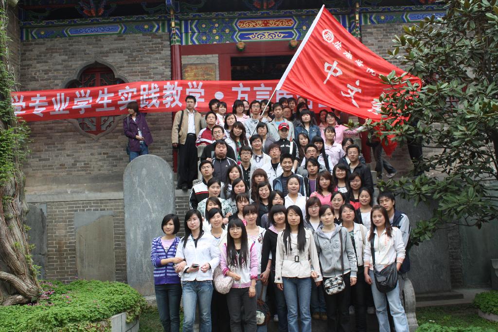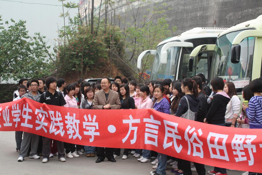 中文系历来重视实践教学,在抓好第一课堂教学的同时,多渠道、全方位组织员工开展丰富多彩的第二课堂实践教学。2010年4月18日,在杨运庚、郝礼军、邹棠华、韩晔四位老师的带领下,中文系07级汉语言文学专业95人奔赴旬阳县开展民俗文化调查研究。在出发前,系主任戴承元给同学们系统讲述了旬阳的民俗文化和孟达墓相关历史知识,使同学们不仅增长了知识,还进一步激发了调研兴趣。