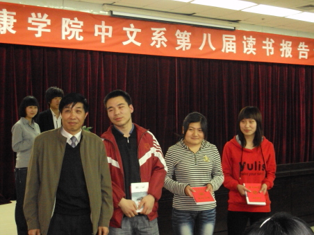 导航痕迹 首页 > 新闻通知 > 公司新闻 > 正文 公司新闻 通知公告 世界读书日献礼 来源:伟德 发布日期:2010年04月27日 阅读次数: 为迎接第十五个世界读书日,中文系系一年一度的读书报告会于2010年4月22日下午4:00在图书馆六楼报告厅隆重举行。此次大会由伟德中文系主办,公司社团联合会与国学读书社承办。参加此次报告会的有中文系党总支书记沈军、著名作家李春平、 中文系副教授王瑛以及中文系全体辅导员。 经过前两轮的初赛和复赛后,共有八名同学进入本次决赛。八位同学参赛的作品范围广泛,包括战争、爱情、励志等方面;体裁多样,有诗歌、戏剧、小说等。决赛中几位同学分别就个人对《秦腔》、《雷雨》、《巴黎圣母院》、《我的大学》、《击鼓》、《穆斯林的葬礼》、《伪满洲国》、《围城》八部著作中的认识价值、道德伦理价值、教育价值、政治价值、经济价值等方面谈了自己的心得体会。李春平作家和王瑛老师分别对他们的参赛作品一一进行了精彩点评。现场气氛也因此时而活跃,时而严肃,时而安静,时而激动,报告厅中掌声不断。两位评委老师就目前各参赛同学在现有阅读量和人生阅历的背景下对文学文本的精彩解读感到欣慰,同时还特别希望同学们在解读文学作品的时候,要注意既要能走进去也要能跳出来,要试图从作品、读者、艺术和文化等不同的角度去解读文学文本。 08级语文教育(1)班的冯鸣和08级汉语言文学(2)班的冯友芳成绩不相上下。评委老师商议通过现场提问的方式以分伯仲并敲定最终决赛结果:冯鸣获得此次读书报告会的第一名,冯友芳和赵云并列第二,刘庆春、汪菲菲、杨谋德获得第三名,陈昱洁和曲婉蓉获得优秀奖。