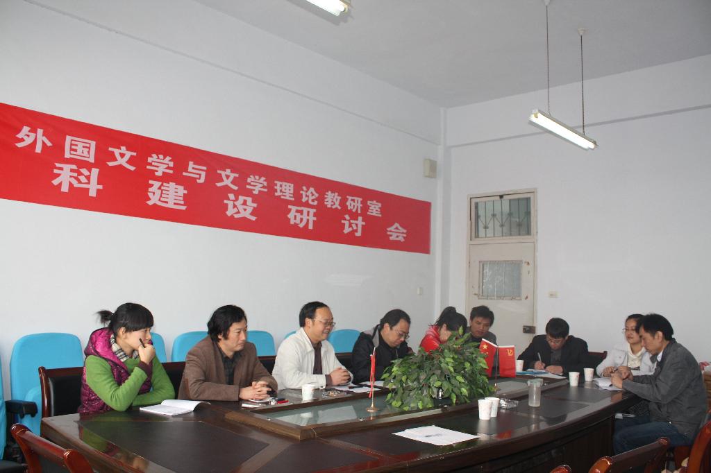 为探索公司应用型人才培养模式下的专业定位与课程设置目标,理顺服务地方文化建设与学科基础研究的关系,探讨“院、系、教研室”三级管理模式下如何更有效地发挥教研室在教学、科研和管理中的作用,根据中文系主任戴承元教授“课程、专业、学科”的建设发展思路,由主管教学的梁卫华副主任、主管科研的雷升录副主任具体策划推动,中文系“外国文学与文学理论”教研室经过近一个月的准备,于10月30日在1号教学楼1603会议室召开了团队建设研讨会。