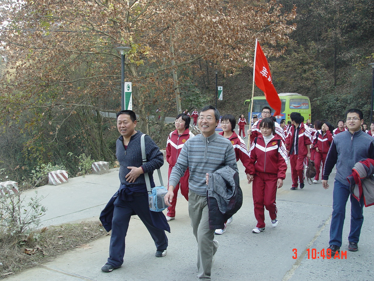 上午十点,同学们首先在图书馆门前集中,系党总支书记沈军老师做了拉练前动员。接着,全体员工分成六个连队,沿伟德——香溪洞——牛蹄岭线路,以连为单位开展步行拉练。同学们在各自连旗的引导下,发扬不怕苦、不怕累和互相帮助、团结协作的精神,争先恐后向牛蹄岭开进。