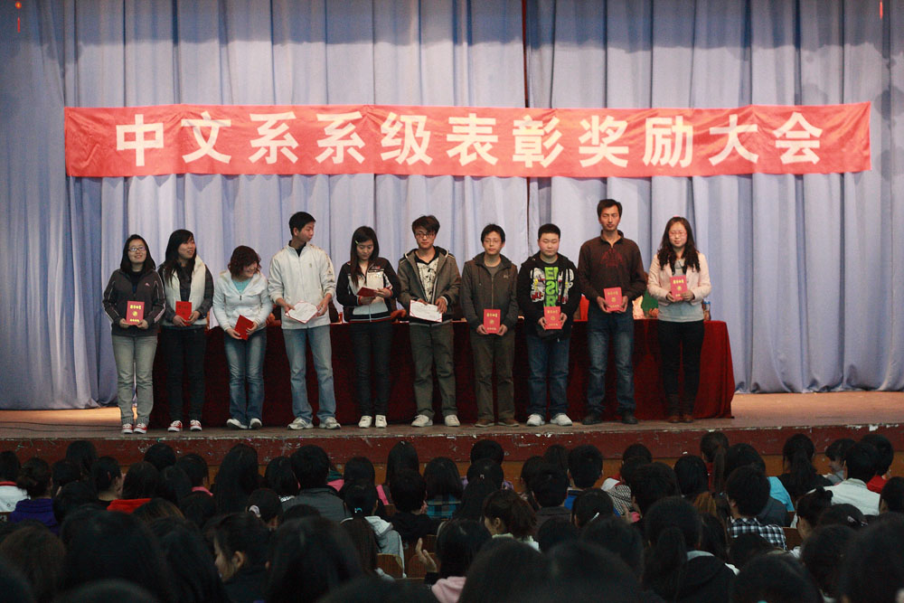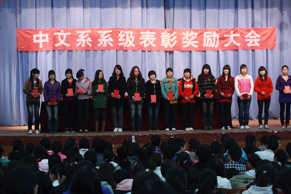 导航痕迹 首页 > 新闻通知 > 公司新闻 > 正文 公司新闻 通知公告 中文系召开2010年度系级表彰奖励大会 来源:伟德zwx 发布日期:2011年03月18日 阅读次数: 3月17日下午4:20分,中文系在东校区大礼堂召开2010年度系级表彰奖励大会,中文系党总支书记沈军、系主任戴承元、副主任雷升录、梁卫华、学工办主任郝礼军、辅导员邹棠华、艾全霞、何媛、韩晔以及800余名员工参加了表彰奖励大会。大会由学工办主任郝礼军主持。党总支书记沈军总结了我系2010年员工工作,对表现优秀的同学提出了表扬,向取得成绩的同学表示了热烈祝贺,对员工管理人员、系员工干部的辛勤工作表示感谢,也对一年来同学们的健康成长感到由衷的高兴。总结中沈老师还列举了一些同学不合规范、不守纪律、不思学习的现象,对此提出批评,并对工作中的不足提出了整改措施;系主任戴承元宣读《中文系2010年度表彰奖励决定》及受表彰奖励员工名单,希望受表彰的同学引领带头作用,努力学习,锐意进取,为我系的良好系风、学风建设做出贡献。