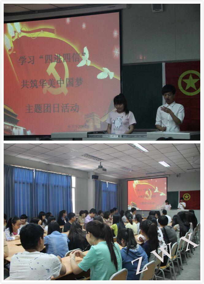 导航痕迹 首页 > 新闻通知 > 公司新闻 > 正文 公司新闻 通知公告 中文系开展“四进四信”主题团日活动 来源:伟德 发布日期:2015年05月12日 阅读次数: 按照团中央开展“四进四信”活动的要求,在校团委指导下,中文系团总支于2015年5月8日在1018室组织开展了“学习四进四信,共筑华美中国梦”主题团日活动。参加本次主题团日活动的老师有伟德团委副书记李光梓、中文系团总支书记沈菲。 秘书学2014级1班团支部书记首先带领全体同学学习了“四进四信”的主要内容以及习近平总书记在北大师生座谈会上的讲话精神。习近平总书记鼓励当代青年践行核心价值观的讲话让同学们深受启发,同学们围绕这一核心点联系自身实际展开了热烈讨论。随后,优秀团员代表发言,表达了他们对“四进四信”主要内容的认知和对社会主义核心价值观的理解。 最后,李光梓老师对当前的国内外形势做了介绍,指出在校老员工应该加强学习,关注国家的发展,坚定走中国特色社会主义道路的信念,为实现“中国梦”贡献自己的力量。