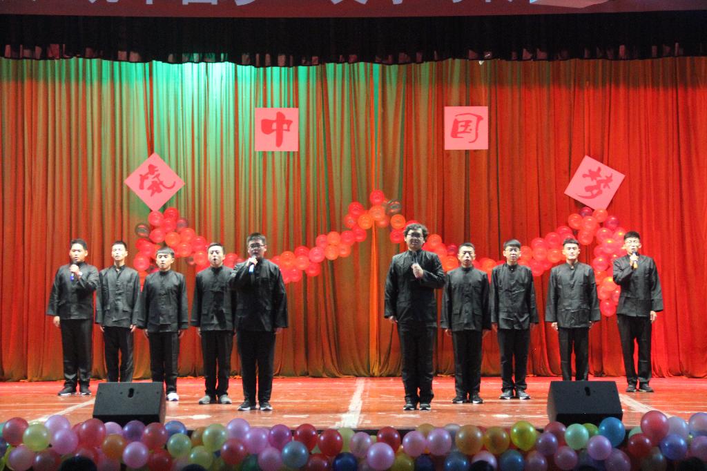 整场晚会精彩不断,高潮迭起,赢得台下阵阵掌声,欢呼声一浪高过一浪,铿锵的朗诵,是正值年华的我们对未来的期望,为晚会画上了圆满句号。晚会末尾,伴随着难忘今宵的歌声,各位老师、主持人、演员以及工作人员在舞台上合影,并祝贺晚会演出成功。
