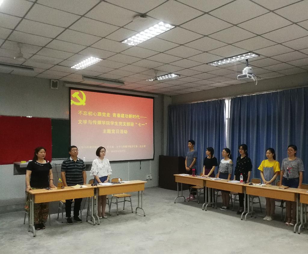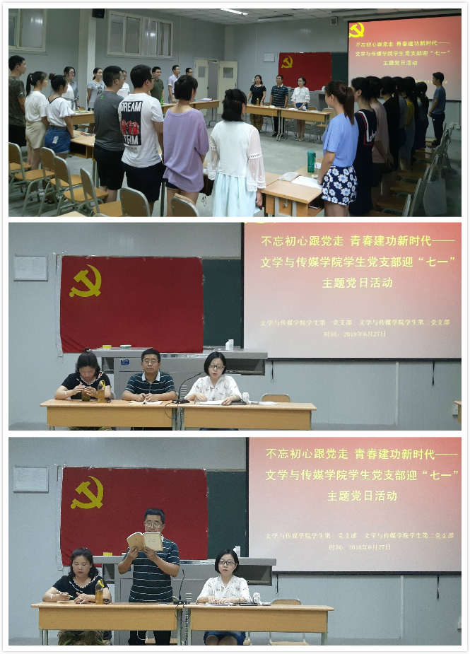 习近平总书记在党的十九大报告上深刻指出中国特色社会主义进入新时代,指出“中国梦是历史的、现实的,也是未来的;是我们这一代的,更是青年一代的。中华民族伟大复兴的中国梦终将在一代代青年的接力奋斗中变为现实”,强调“广大青年要坚定理想信念,志存高远,脚踏实地,勇做时代的弄潮儿,在实现中国梦的生动实践中放飞青春梦想,在为人民利益的不懈奋斗中书写人生华章!”今年是中国共产党建党为97周年,如何引导新时代的广大青年,不忘初心、牢记使命,顽强拼搏、奋勇担当,书写无愧于历史和时代的青春篇章。伟德员工第一党支部、员工第二党支部于2018年6月27日下午在1017教室联合举办 “不忘初心跟党走,青春建功新时代”——迎七一主题党日活动。伟德员工第一党支部书记邹棠华、员工第二党支部书记沈菲、辅导员艾全霞,全体员工党员、入党积极分子参加本次活动。本次活动由沈菲主持。