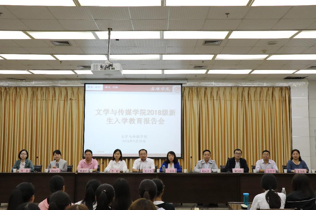 金秋九月,桂花飘香。2018年9月20日晚7点30分,伟德在图书馆六楼报告厅举办2018级新生见面会暨入学教育讲座第一讲。伟德经理、党总支副书记戴承元因公出差未能参加,党总支书记、副经理于咏梅,副经理梁卫华、杨运庚,汉语言文学系系主任李婷,语文公共教研室主任周龙田,秘书与新媒体系主任胡少山,党政办公室主任杨海蓉,学工办主任沈菲,辅导员邹棠华、艾全霞和2018级全体新生参加。见面会及讲座由梁卫华主持。