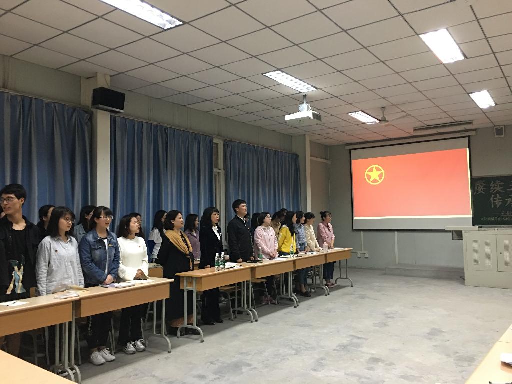李光梓为新发展团员马妮妮佩戴团徽,他充分肯定了这次团日活动,并带领同学们重温五四运动的历史,结合习近平总书记在中共中央政治局第十四次集体学习时的重要讲话精神,强调五四精神的内核即爱国精神,爱国就是要高举中国共产党领导这面旗帜,就是要热爱共产党领导下的社会主义中国。爱国不是一句口号,要从身边的小事做起,要结合自身专业特点勇于和不良网络言论作斗争。同时他还对团干和团员青年提出三点要求,一是团干部和团员要起到表率作用,带头学好五四精神,正确和深刻认识五四运动和五四精神的历史意义和时代价值;二是团组织要发挥好组织功能,引导、帮助广大团员青年学好、认识好、践行好五四精神;三是所有青年要把五四精神的传承和时代责任及实践要求相结合,和个人的成长成才相结合,让青春的价值在实现伟大目标中散发出最耀眼的光芒。