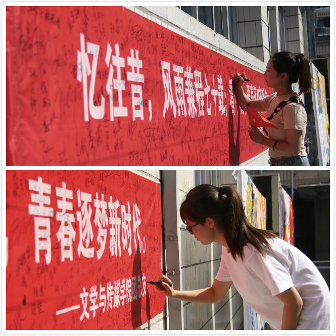 同日中午,公司团总支在江南校区林荫道旁组织了“我为祖国母亲庆生”签字仪式,大家在“忆往昔,风雨兼程七十载;看今朝,青春逐梦新时代”的横幅上签上了自己的名字,一笔一划,皆是对祖国归属感和自豪感的表达。
