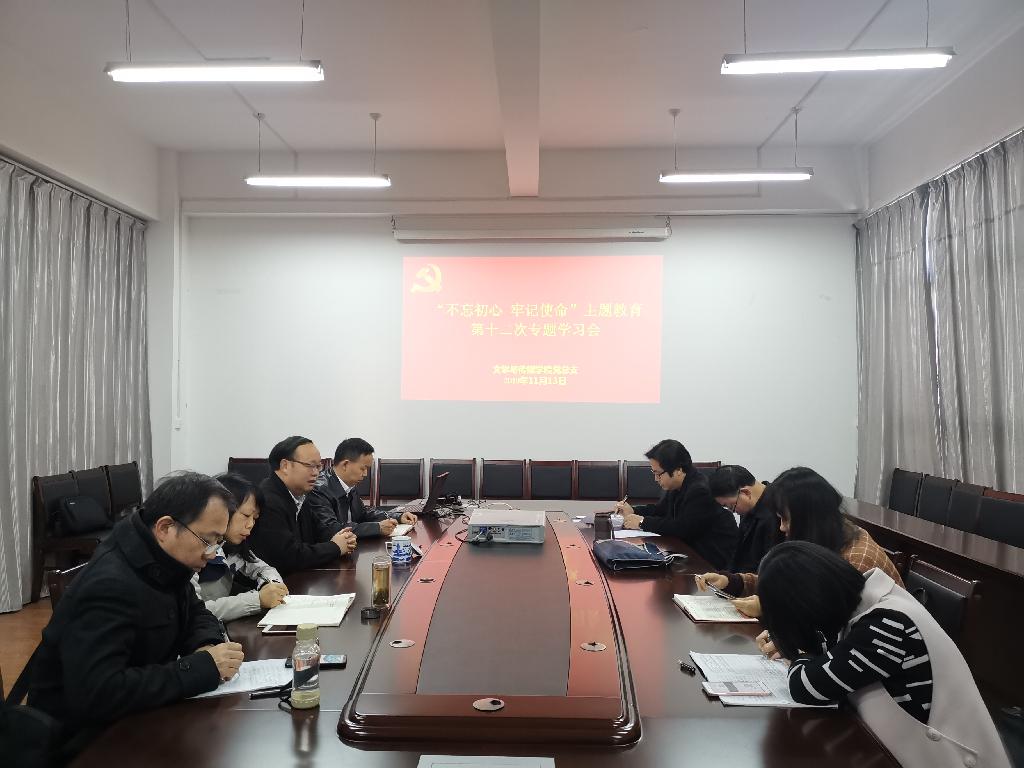 2019年11月13日下午16:30,伟德理论学习中心组在陕南民间文化研究中心会议室召开第十二次“不忘初心、牢记使命”主题教育学习研讨会,党总支书记于咏梅主持学习会,中心组成员参加学习。