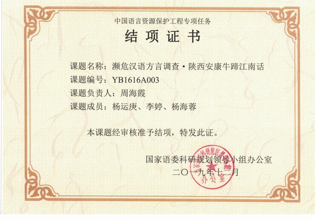 导航痕迹 首页 > 新闻通知 > 公司新闻 > 正文 公司新闻 通知公告 伟德教师周海霞主持的中国语言资源保护工程重点专项项目顺利结题 来源:伟德 发布日期:2020年10月28日 阅读次数: 公司教师周海霞主持的中国语言资源保护工程重点专项项目“濒危汉语方言调查·陕西安康牛蹄江南话”顺利通过结题验收,音频、视频、文字资料全部合格并收入中国语言资源库。 “濒危汉语方言调查·陕西安康牛蹄江南话”项目2016年4月正式被国家语委科研规划领导小组办公室立项,到账经费18万元,牛蹄江南话也是本批中国语言资源保护工程项目确定列入的陕南范围内的唯一一个濒危汉语方言保护调查点。本项目研究历时三年六个月,项目成果录制音频、视频资料各3828条,收集方言民俗照片100余幅,形成方言志书文字材料30余万字。 撰稿/周海霞 审核/杨运庚 发布/崔瑜