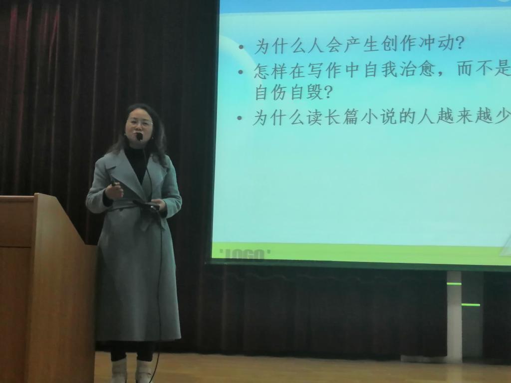 王娅莉老师从分析现代人的阅读倾向开始,围绕“创作冲动与心灵自愈”“何谓美的散文”“散文创作的优势与局限性”“散文的取材范围”“散文的语言锤炼”“散文的立意修炼”“散文的生存美学”等话题进行讲授。在授课过程中,列举大量的散文名家名作进行阐述,也结合自己创作散文的体会让同学们比较全面地、接地气地了解了散文的文体特点和创作技巧,同学们收获颇多。