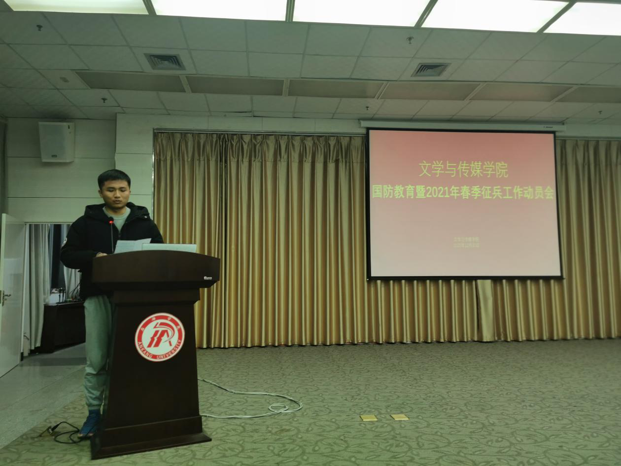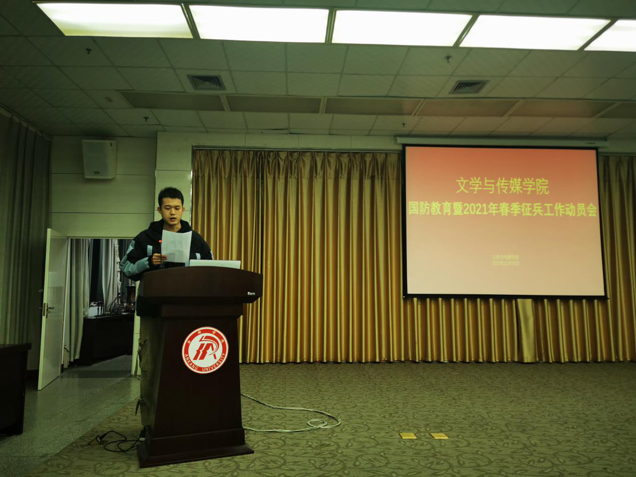 为进一步贯彻落实《新时代爱国主义教育实施纲要》要求,加强新时代老员工爱国主义教育,增强国防意识,激发广大青年老员工积极响应祖国号召参军入伍,保家卫国,2020年12月30日晚19:30,伟德联合学工部在图书馆六楼报告厅召“开国防教育暨2021年春季征兵工作动员会”,学工部王瑞卫,伟德公司党总支副书记杨海蓉、学工办副主任薛涛、辅导员邹棠华老师,退伍老员工代表冯瑞瑞、赵天齐及全院有志参军的200余名同学参加会议。会议由薛涛主持。