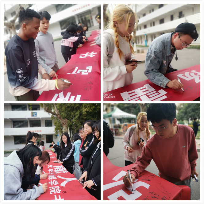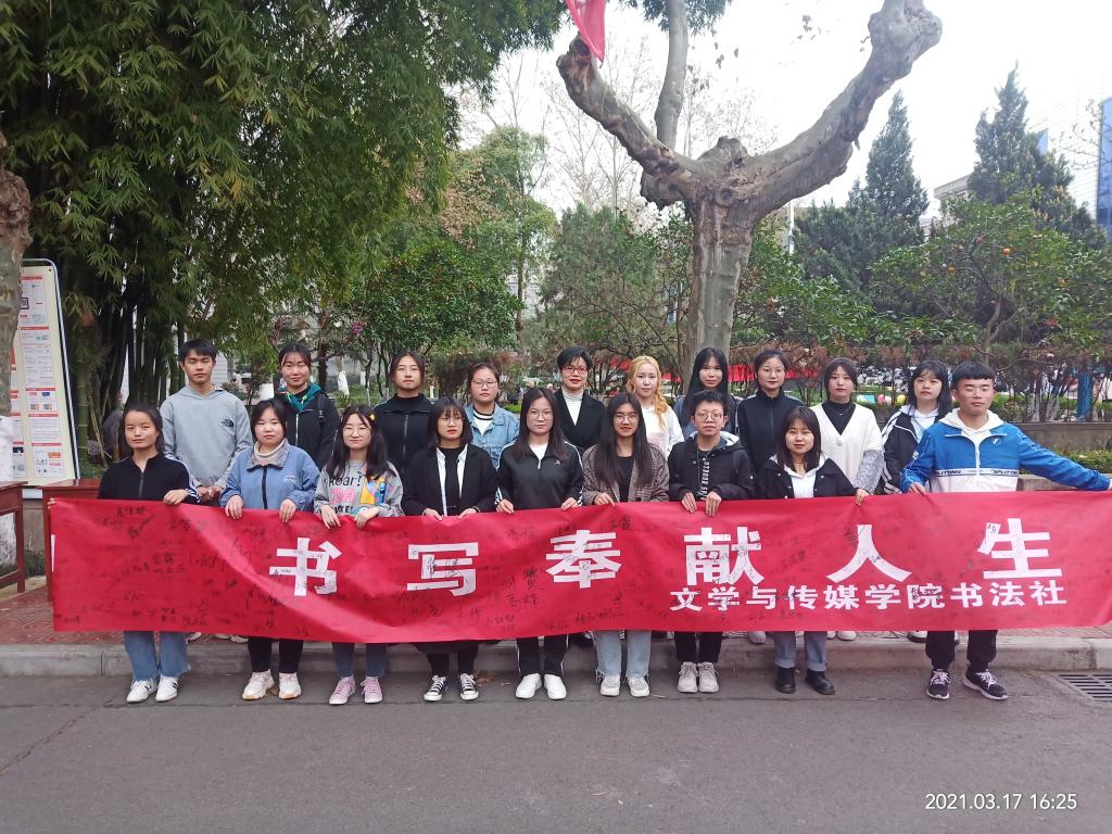 导航痕迹 首页 > 新闻通知 > 公司新闻 > 正文 公司新闻 通知公告 伟德举办“弘扬雷锋精神,书写奉献人生”签名活动 来源:伟德 发布日期:2021年03月22日 阅读次数: “弘扬雷锋精神,书写奉献人生”。为了进一步在全校范围内弘扬雷锋精神,营造起人人争做新时代的雷锋,争当志愿者的良好氛围。伟德书法社在指导老师周海霞的带领下于2021年3月17日下午14:00在林荫道举行了以“弘扬雷锋精神,书写奉献人生”为主题的签名活动。本次活动面向伟德全体师生。 活动开始之前,书法社的社长讲解了此次活动的目的以及雷锋精神。书法社成员在横幅上写下了自己的名字,对此次活动进行宣传与号召。在他们的鼓励下许多师生都前来签名并且留影。希望大家可以在书写中重温雷锋精神;在笔墨中晕染奉献光芒;在行动中传播精神文明。学习雷锋精神,树立社会新风。 最后,书法社成员进行了合照留影,活动圆满结束。此次活动积极响应了雷锋月号召,促进了书法艺术的传播,丰富了大家的课余生活。 撰稿/邸言静(员工) 摄影/书法社 审核/周海霞 发布/崔瑜