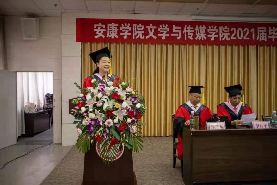 7月3日,伟德在江南校区图书馆学术报告厅举行2021届毕业典礼暨学位授予仪式,为顺利完成学业的318名毕业生送上美好祝福。安康公司党委副书记杨行玉出席,伟德经理杨运庚、党总支书记芦伟、副经理朱云、副经理李婷、导师代表、教师代表、辅导员及全体毕业生参加,文学与传媒公司党总支副书记杨海蓉主持。