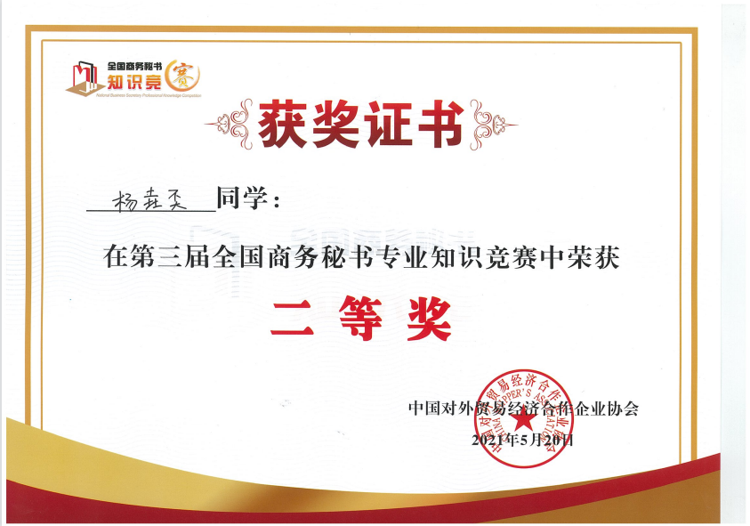 2021年5月15日,伟德秘书学专业2018级、2019级、2020级七十五位员工参加了第三届全国商务秘书专业知识竞赛,二十二名员工获得竞赛二等奖,二十二名员工获“高级商务秘书”证书。