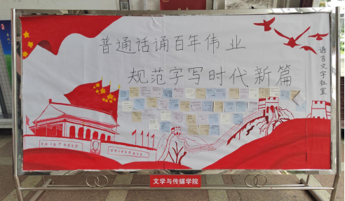 同学们在打印好的寄语中挑选自己喜欢的话语写在展板的便利贴上。与此同时,为提高师生对普通话的正确意识,宣传部在校园内分发相关的普通话宣传手册,讲解相关知识,使同学们进一步了解普通话的意义。