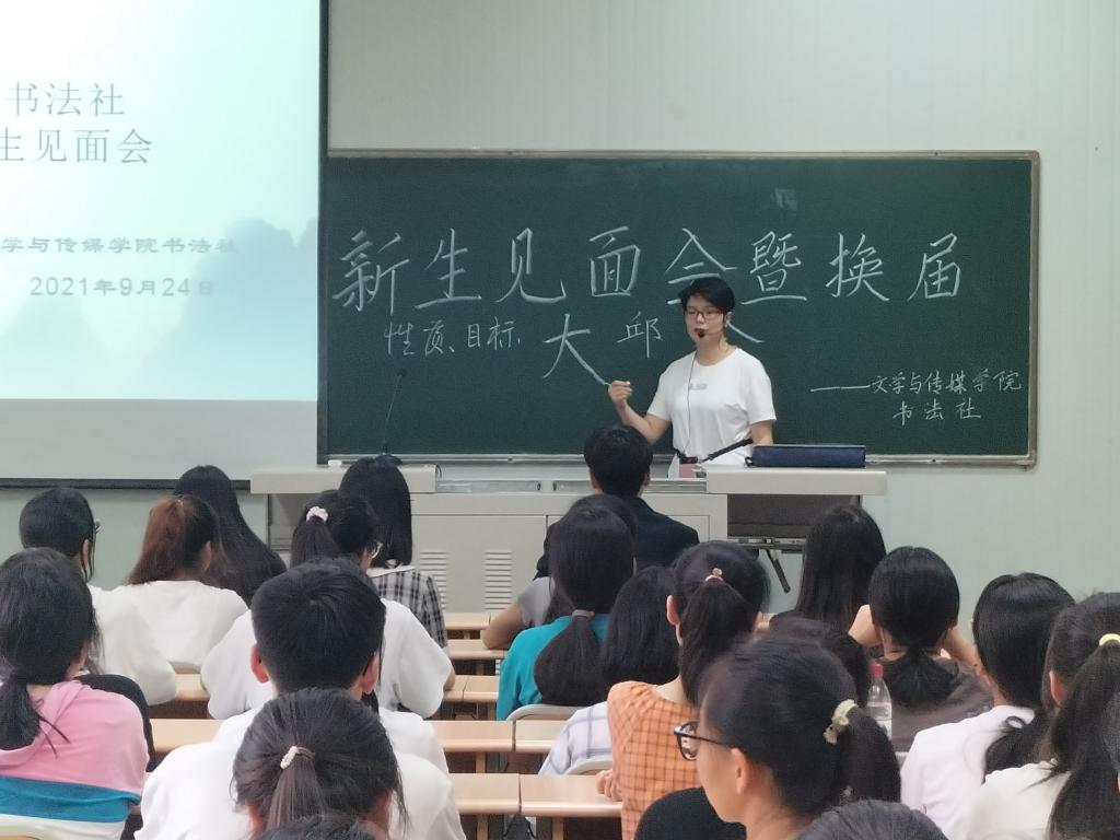 彰显笔墨风采,传承书香文化。伟德书法社于2021年9月24日16:40在1028教室成功举办了第八届换届暨纳新仪式见面会。参加见面会的有书法社指导老师周海霞老师,前任社长王思蓉,现任社长马子涵以及103位社团成员。