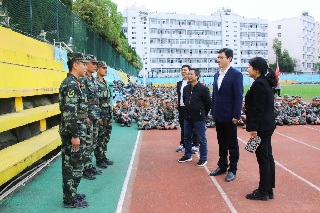 为关心、了解新生们军训期间的生活、训练情况,10月12日下午,文学与传媒公司党总支书记芦伟、党总支副书记杨海蓉、学工办主任薛涛、团总支书记彭潇、新生辅导员邹棠华老师一行到新生军训场地,看望2021级全体新生和承担公司军训任务的教官。